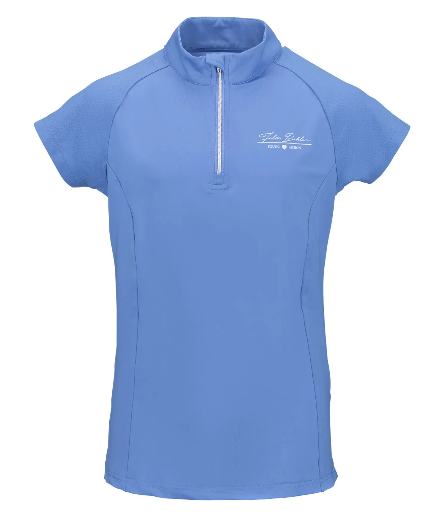 T-shirt technique et sportswear. Matière respirante à séchage rapide. Manches raglan en mesh. Col montant zippé avec protège-menton. Logo discret imprimé sur la poitrine. Motif cheval au dos, sous le col. 88 % polyester, 12 % élasthanne.