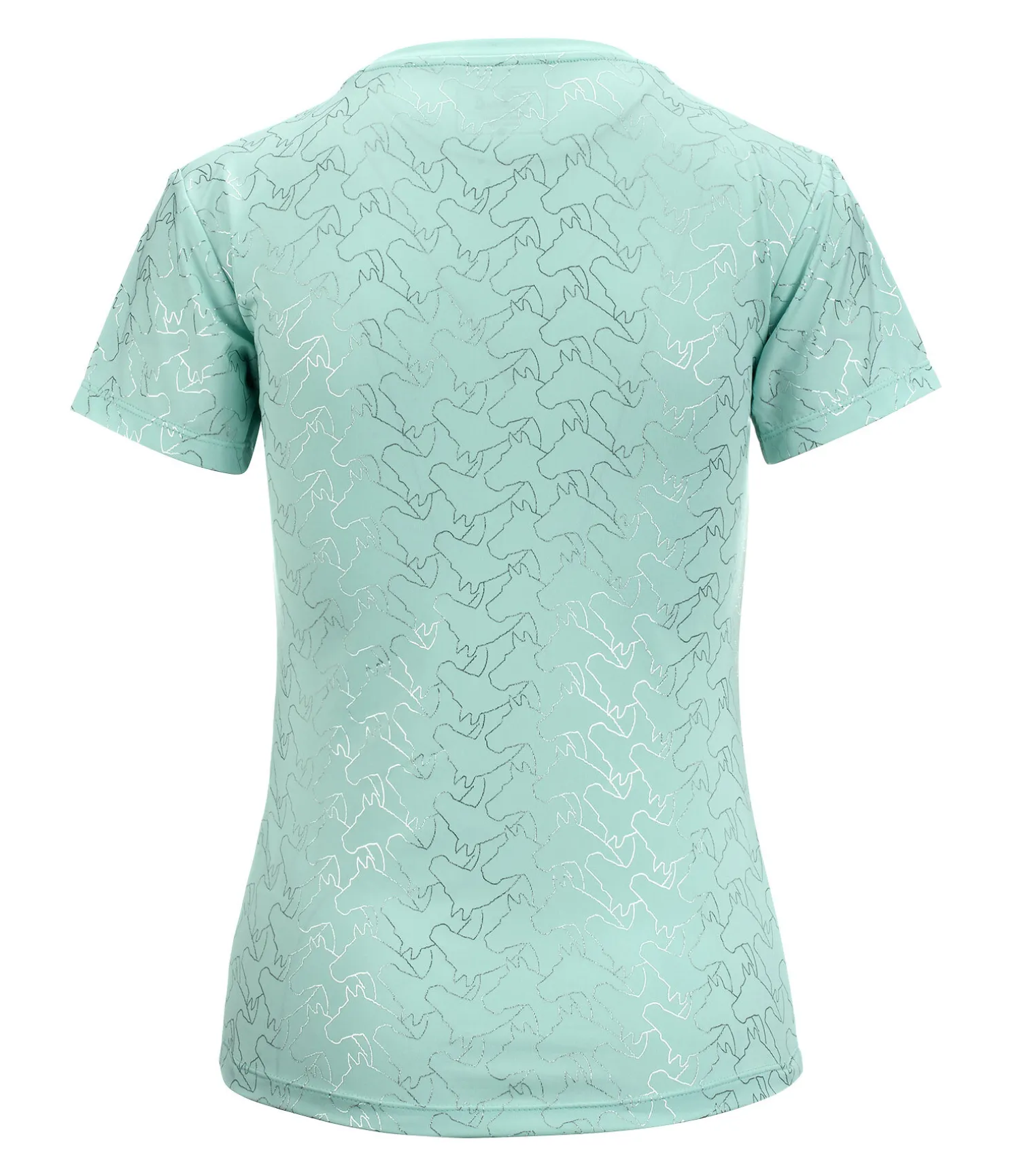 T-shirt chic à col rond avec imprimé all-over métallisé motif tête de cheval. Tissu technique respirant et à séchage rapide. 88 % polyester, 12 % élasthanne.