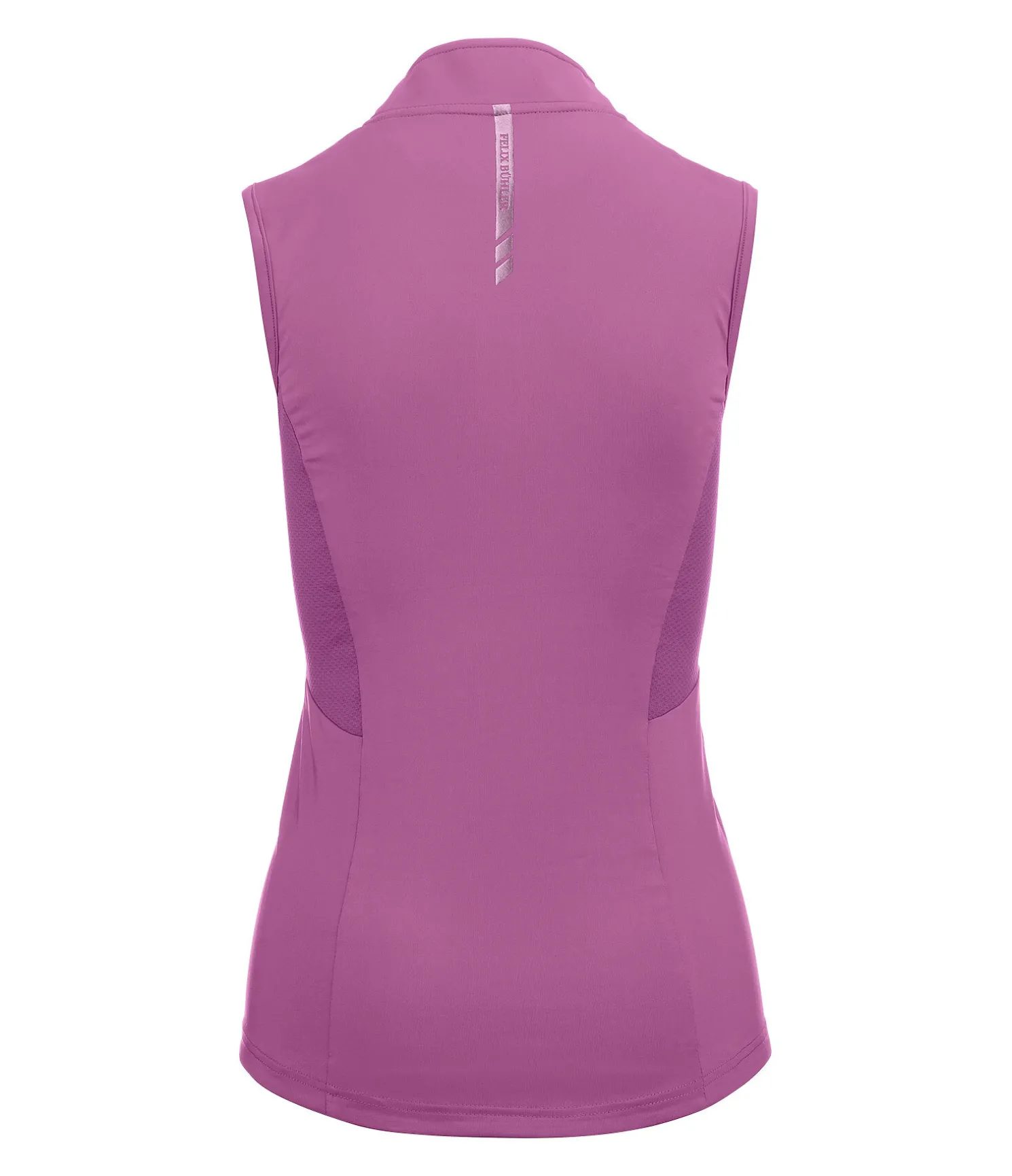 Essentiel pour l’été ! T-shirt technique sans manches avec col montant et fermeture à glissière scintillante avec protège-menton. Respirabilité maximale grâce aux empiècements en mesh sur les côtés. Tissu technique respirant et à séchage rapide. 88 % polyester, 12 % élasthanne.