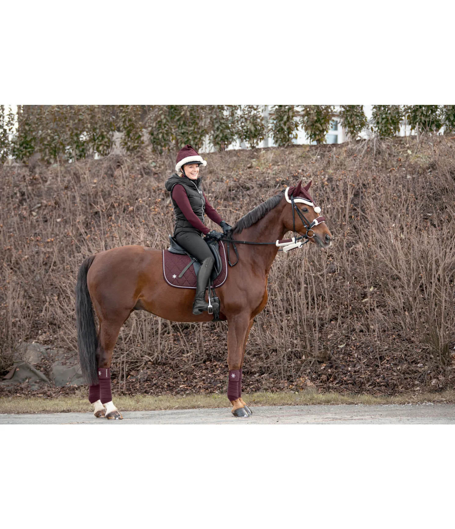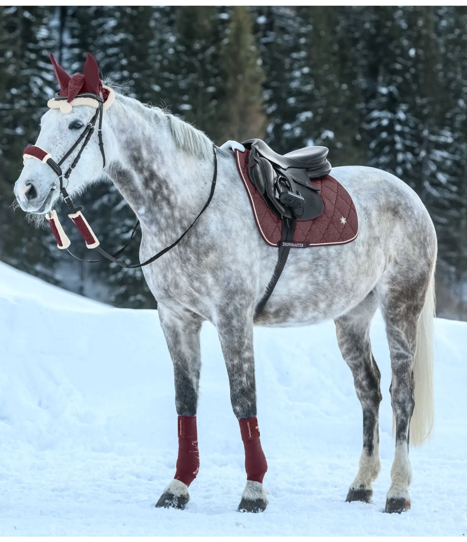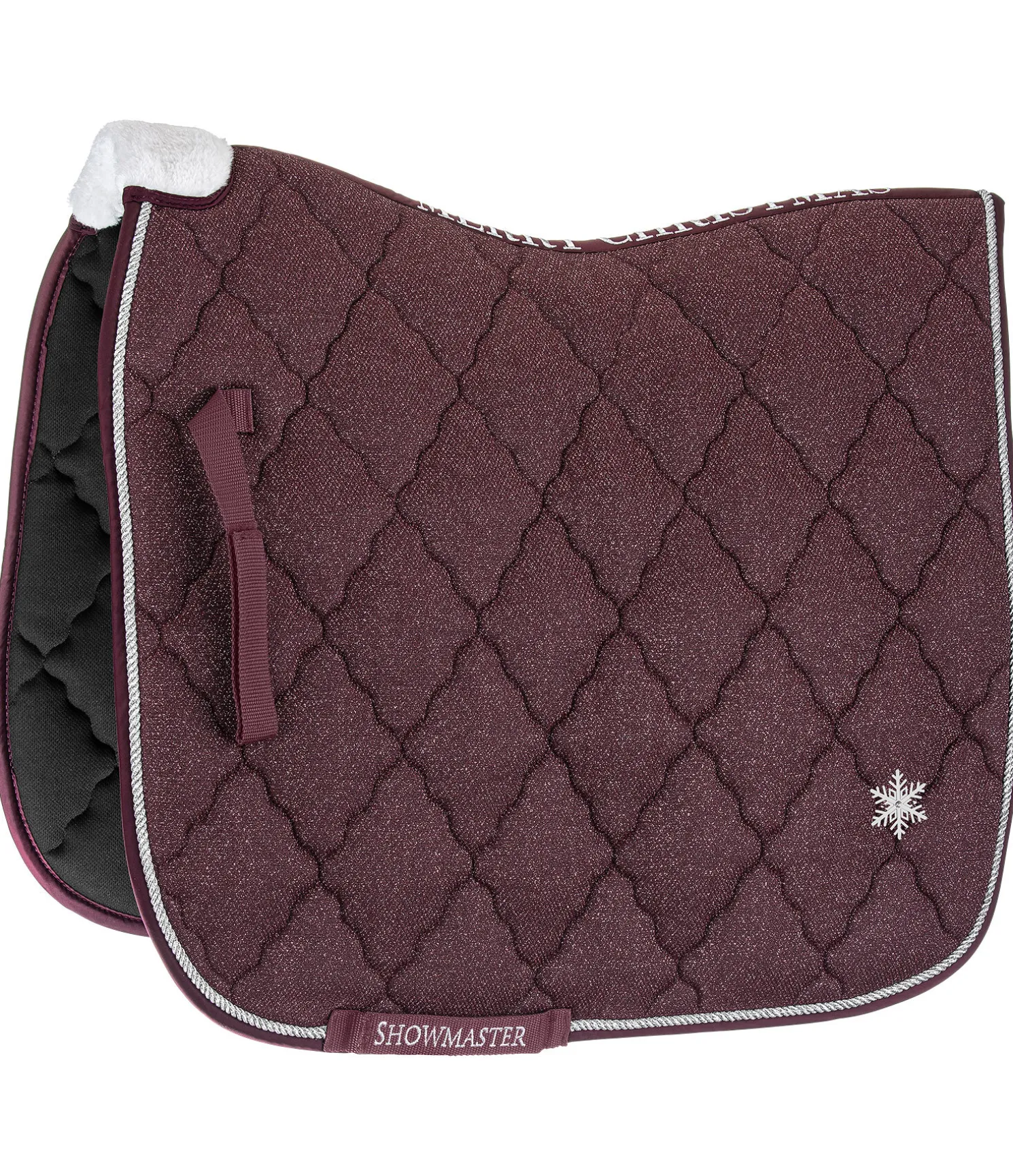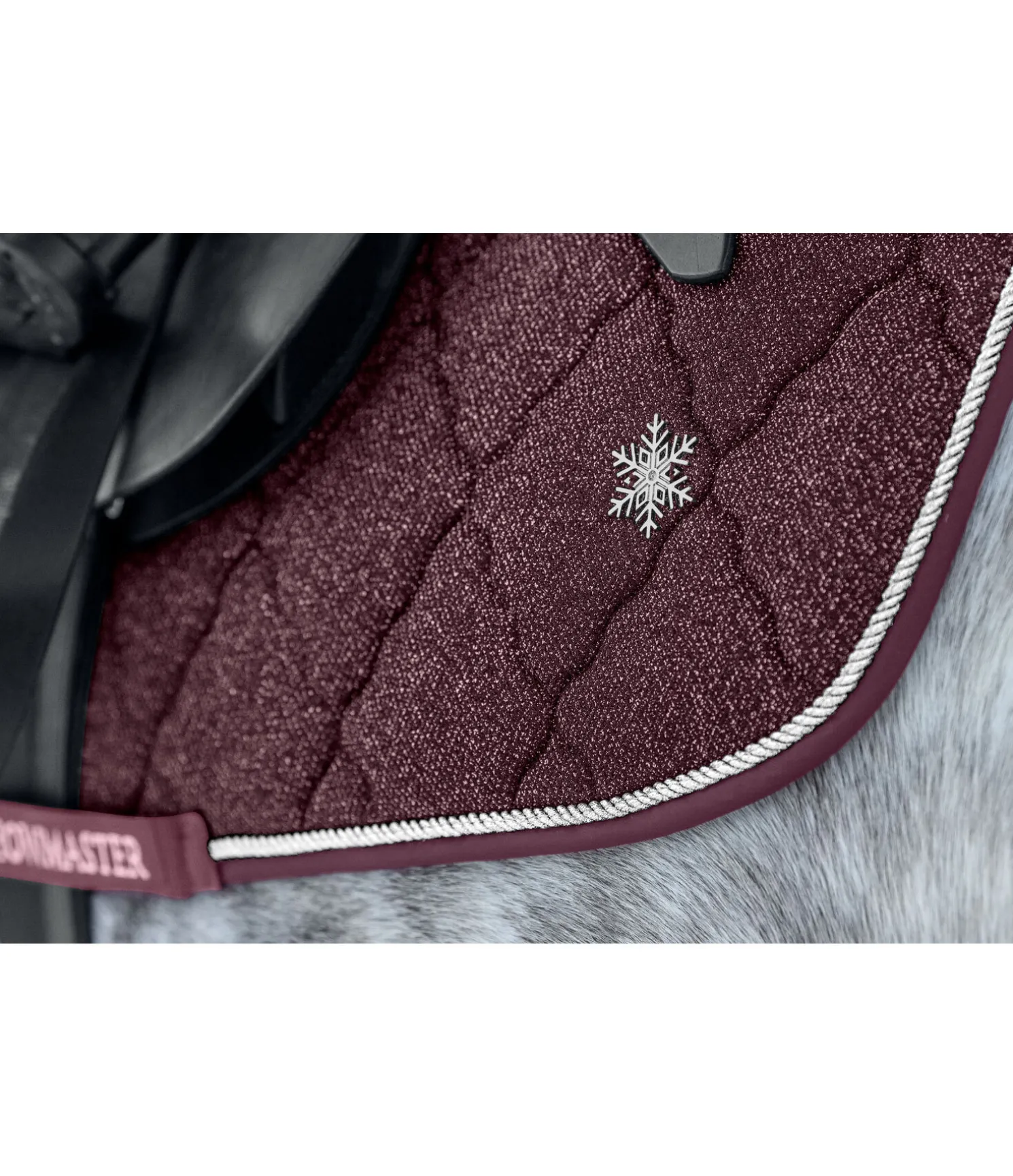 Tapis de selle de Noël scintillant, décoré d’un flocon de neige. 100 % polyester.