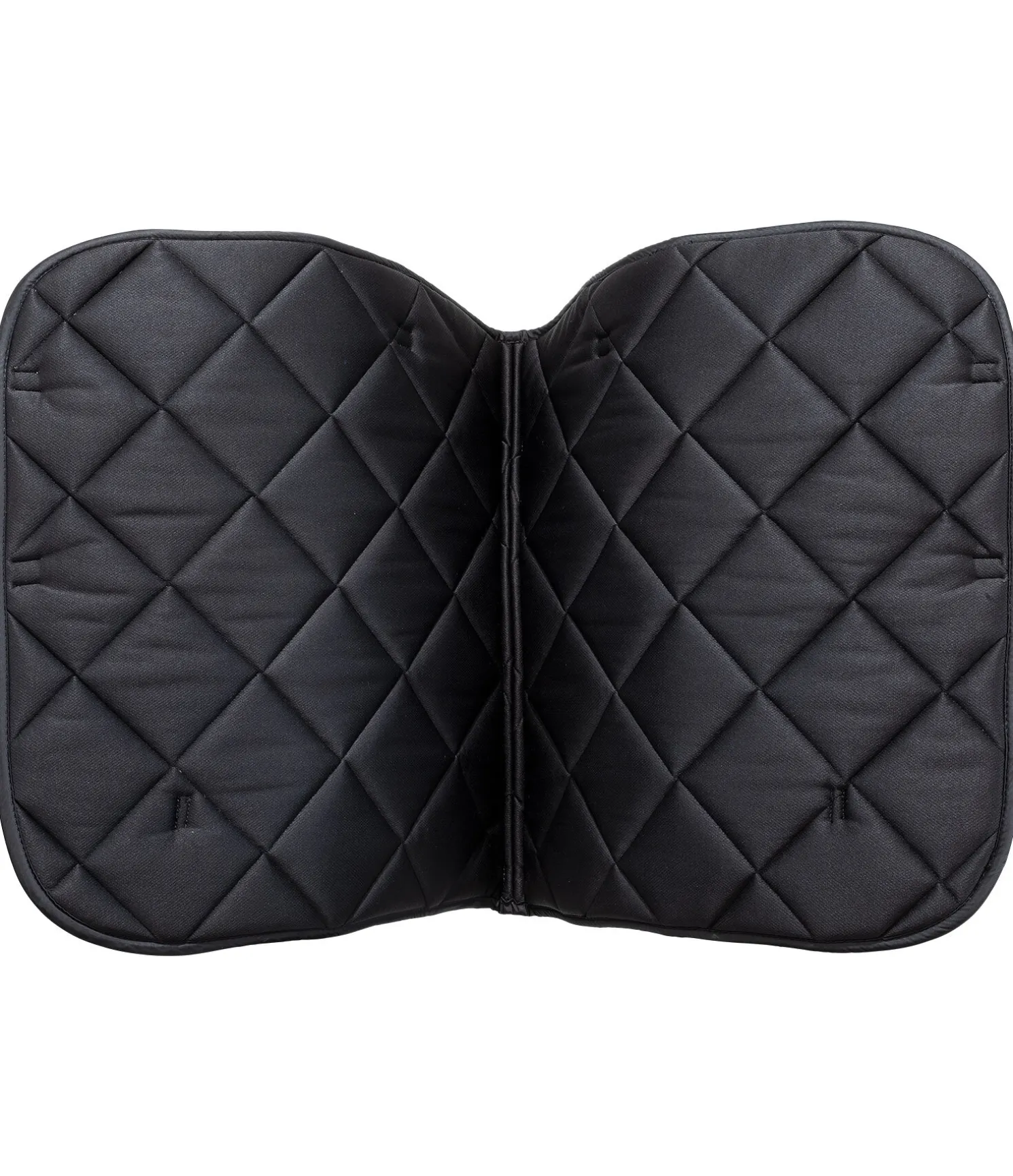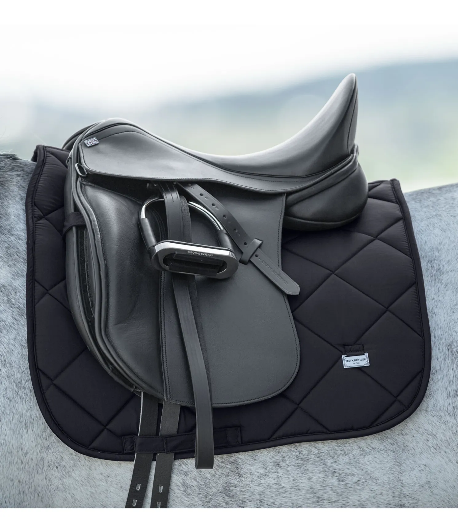 Tapis de selle épuré et brillant en tissu satiné avec une élégante surpiqûre en losange. Orné de chaque côté d’une petite plaque métallique avec logo. Passants de sangle et de contre-sanglons avec patte auto-agrippante pratique. Dessous en Air mesh respirant et absorbant l’humidité. 100 % polyester.