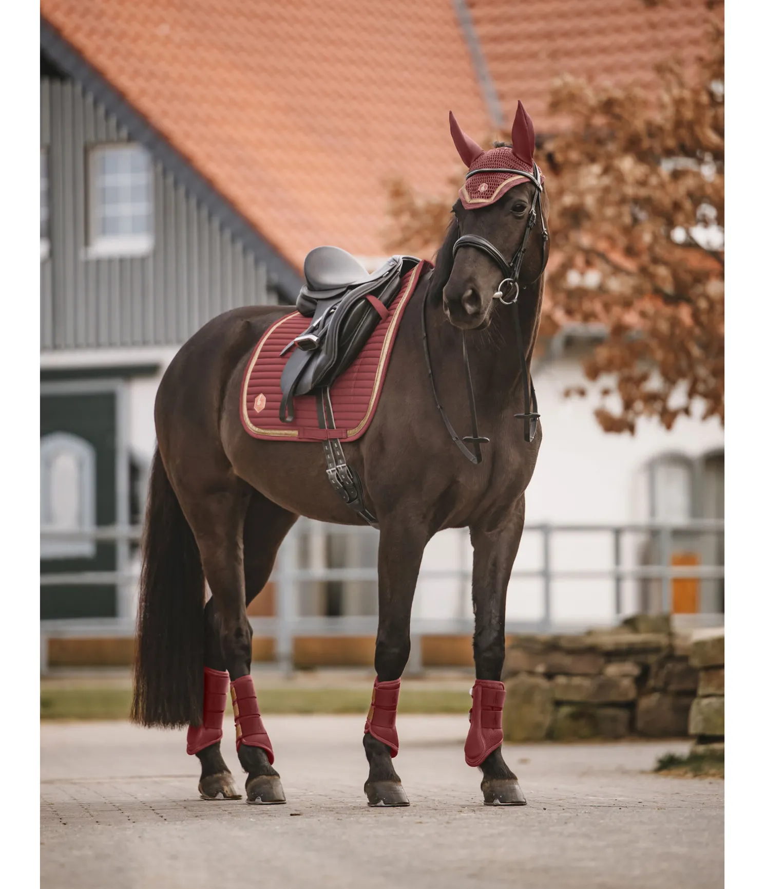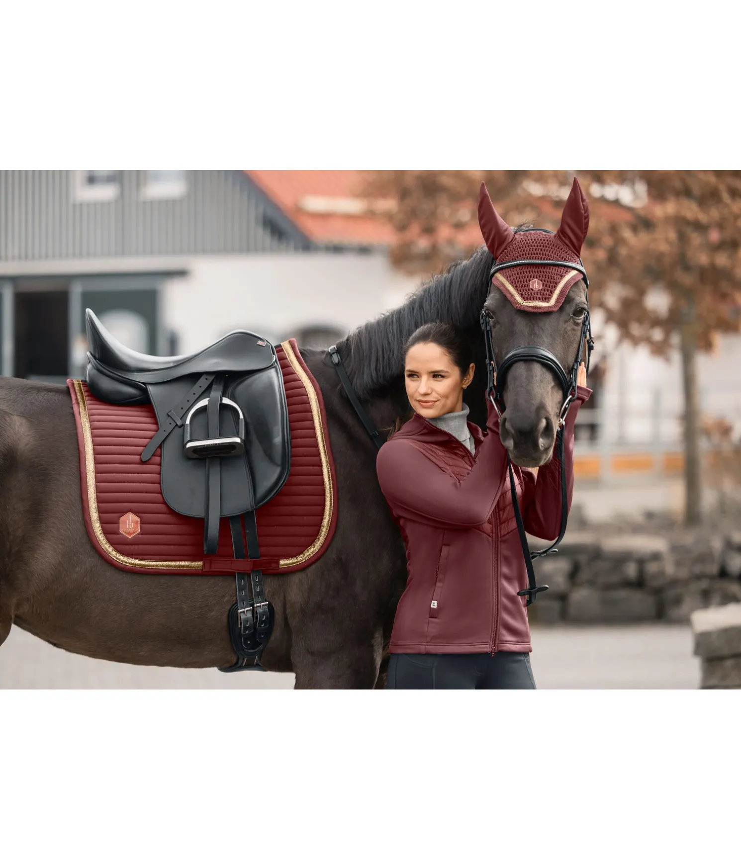 Tapis de selle élégant et sportif avec bande scintillante de couleur assortie et logo ton sur ton. Insert en mesh particulièrement respirant le long du dos pour une aération optimale. Dessus en matière lisse, souple et anti-salissures. Surpiqûre horizontale sportive. Passants de sangle et de contre-sanglons avec pattes auto-agrippantes pratiques. Dessous en Air mesh respirant et absorbant l’humidité. 100 % polyester.