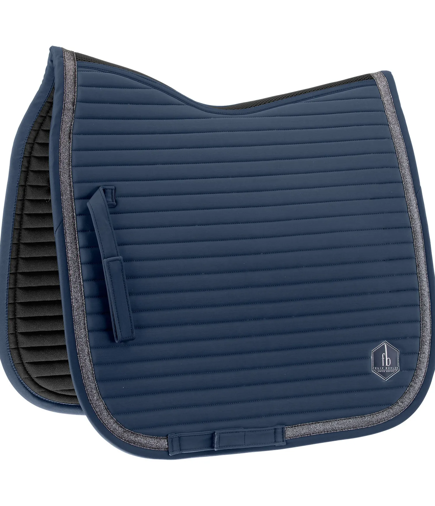 Tapis de selle élégant et sportif avec bande scintillante de couleur assortie et logo ton sur ton. Insert en mesh particulièrement respirant le long du dos pour une aération optimale. Dessus en matière lisse, souple et anti-salissures. Surpiqûre horizontale sportive. Passants de sangle et de contre-sanglons avec pattes auto-agrippantes pratiques. Dessous en Air mesh respirant et absorbant l’humidité. 100 % polyester.