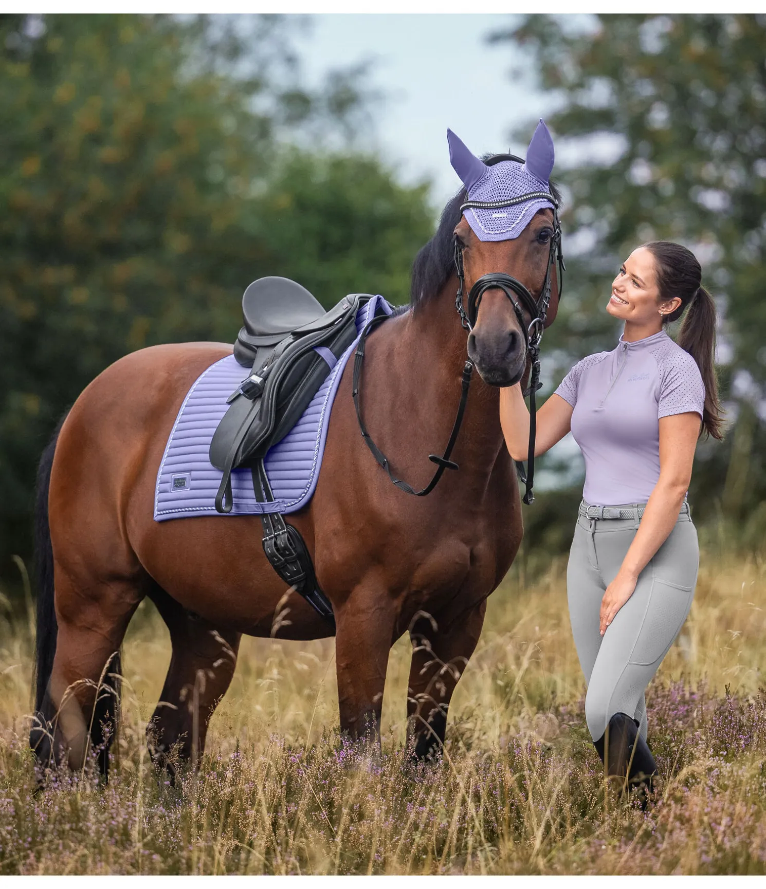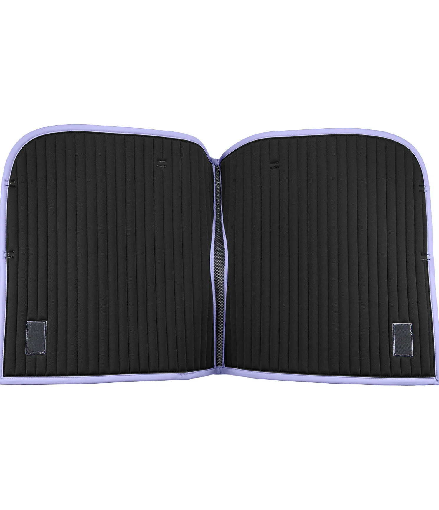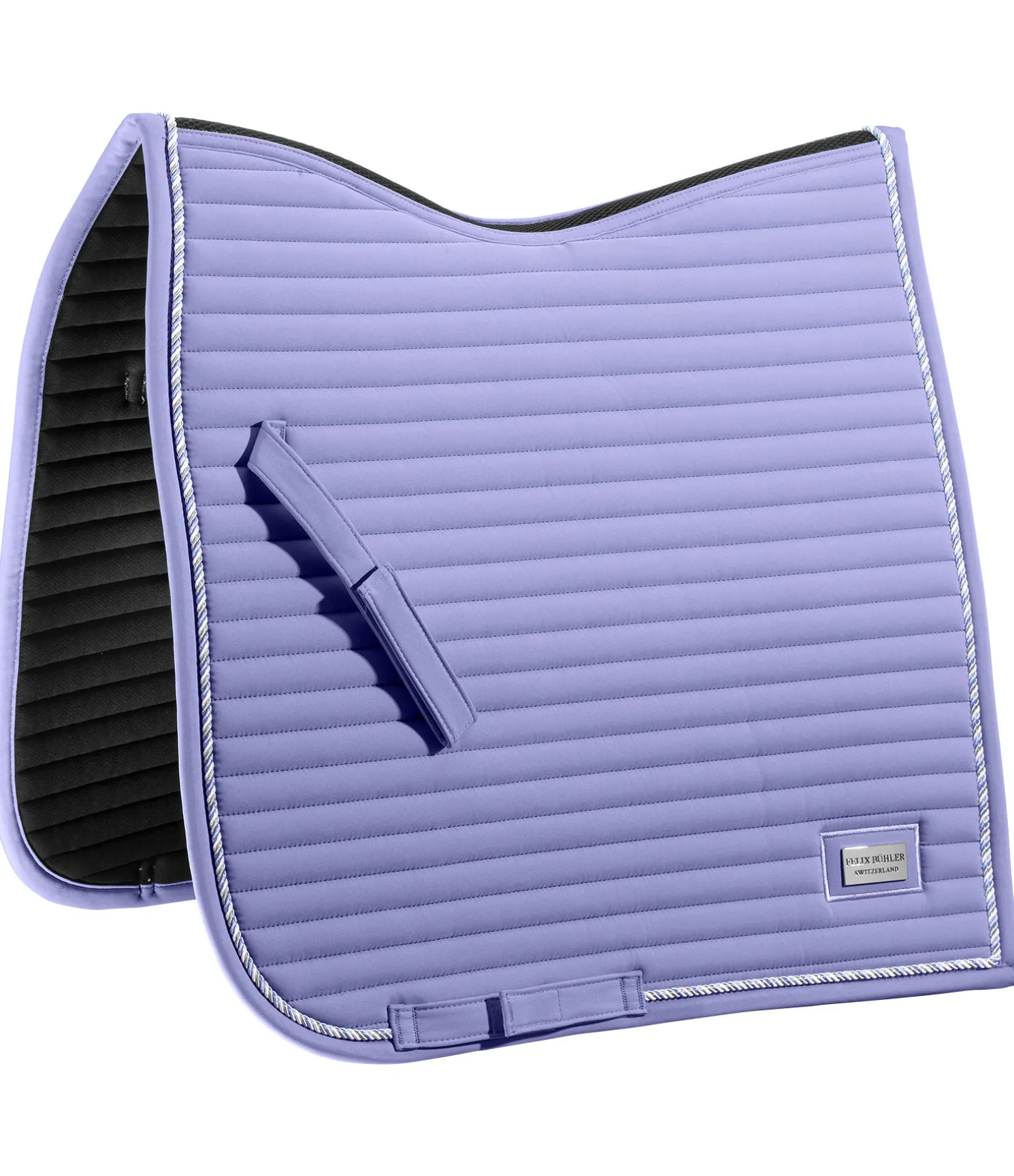 Élégant tapis de selle qui se distingue par son angle droit et sa plaque logo métallique classique. Surpiqûre sportive en rayures horizontales et cordon décoratif de couleur assortie. Insert en larges mailles alvéolées le long du dos pour une circulation de l’air optimale. Passants de sangle et de contre-sanglons avec patte auto-agrippante pratique. Dessous en Air mesh respirant et absorbant l’humidité. 100 % polyester.