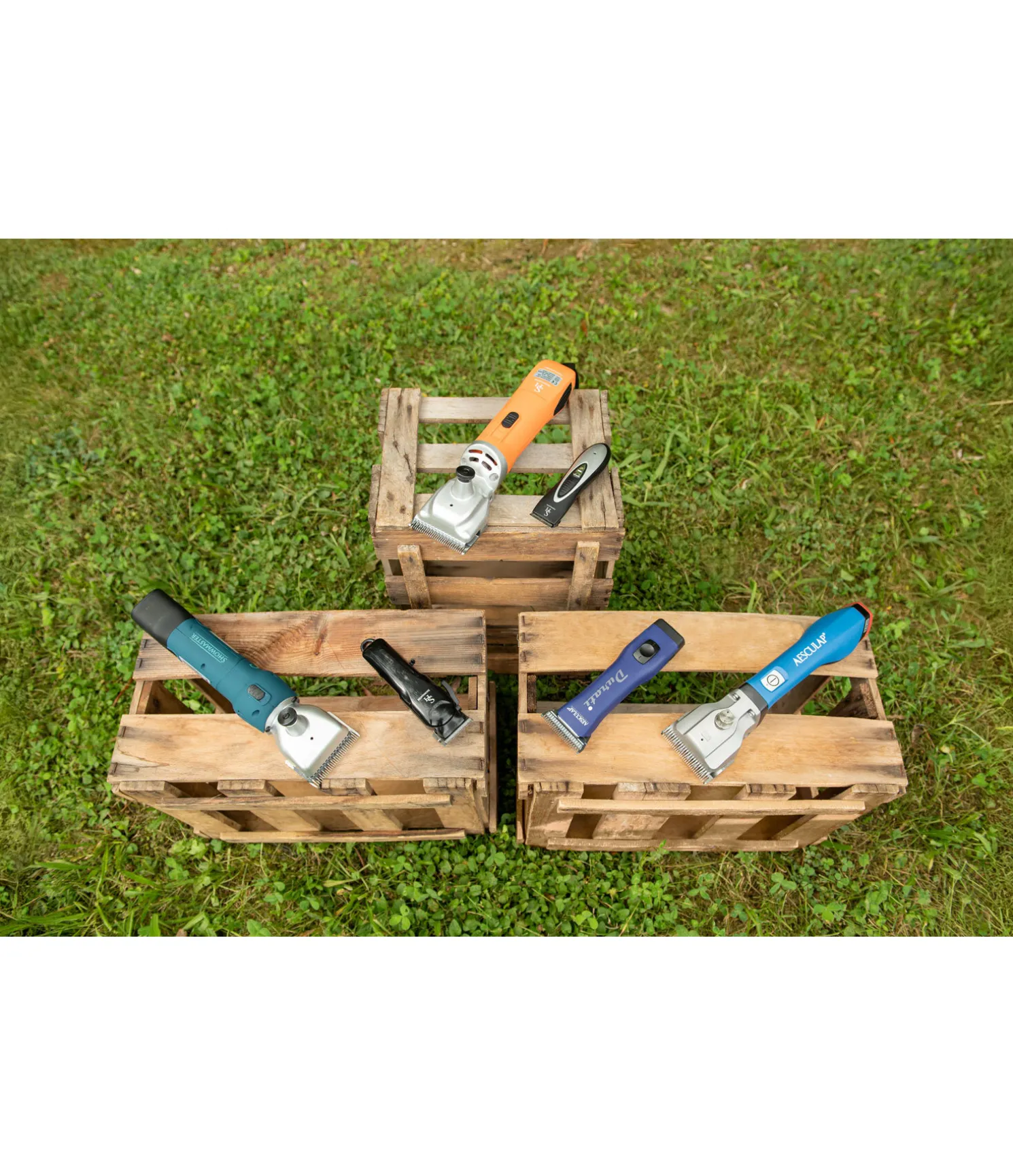 Livrée dans un coffret solide comprenant : tondeuse avec peignes et batterie, batterie de rechange, chargeur de batterie, tournevis et huile spéciale pour tondeuse.