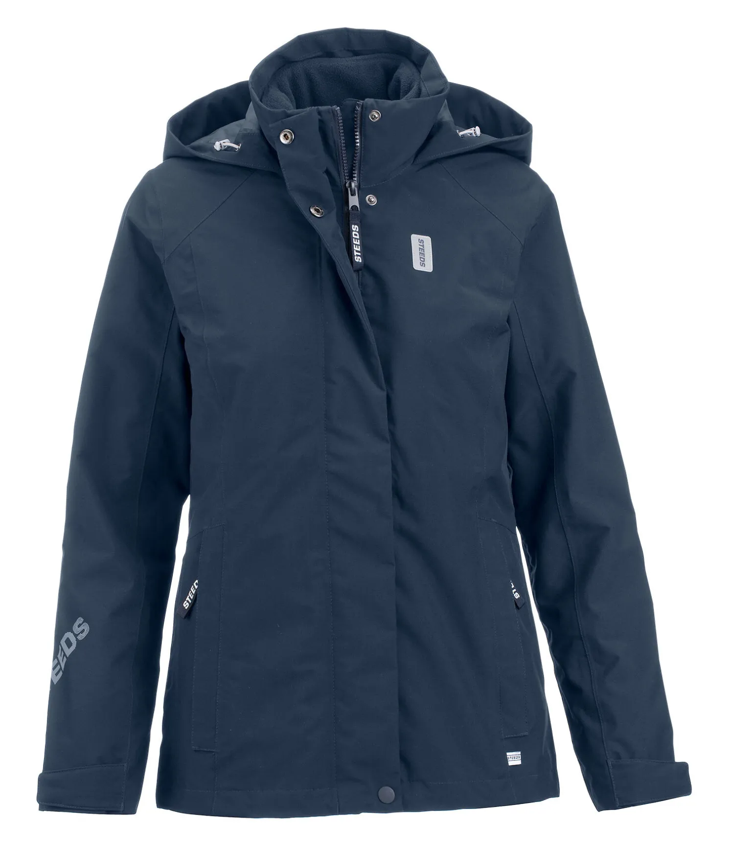 La veste STEEDS 3 en 1 réunit deux vestes en 1 et offre 3 styles possibles. Veste extérieure coupe-vent, imperméable (5.000 mm) et respirante avec col montant et capuche rétractable ou fixable dans le dos par bouton-pression, fermeture à glissière bidirectionnelle dissimulée, 2 poches zippées dissimulées, bas des manches et ourlet ajustables, imprimé STEEDS sur la manche, badge STEEDS sur la poitrine et poche intérieure zippée. La veste intérieure en polaire peut être portée seule ou être insérée à la veste extérieure grâce à une fermeture à glissière. Veste en polaire avec col montant, 2 poches avec bouton-pression et broderie STEEDS sur la manche. Les deux vestes sont légèrement plus longues à l’arrière. 100 % polyester, doublure intérieure 100 % polyuréthane.