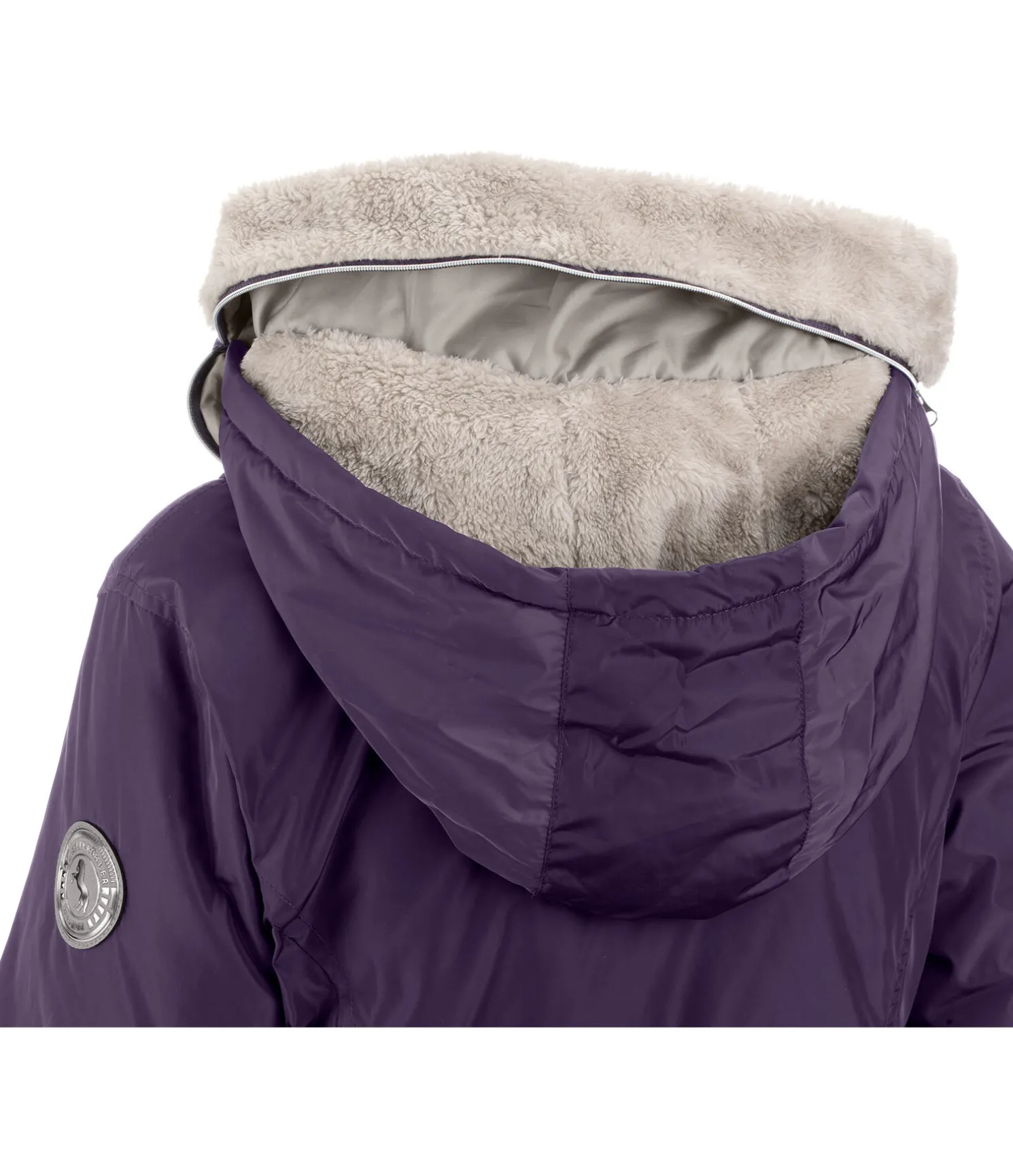 Veste d’équitation d’hiver technique, déperlante et coupe-vent. Matière respirante et chaude. Large col et capuche amovible doublés en polaire Teddy douce. Capuche rétractable dans le large col. Garnissage imitation duvet. Fermeture à glissière double sens dissimulée avec protège-menton. Deux poches zippées latérales dissimulées et une poche intérieure. Taille ajustable. Deux fentes cavalières avec boutons-pression à l’arrière. Badge logo Felix Bühler sur la manche. Fermeture à glissière et boutons-pression rose doré. 100 % polyester.
