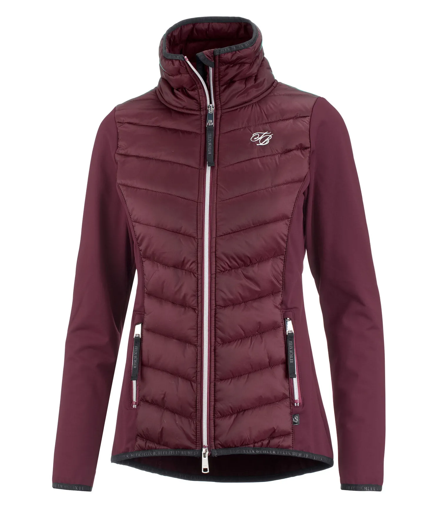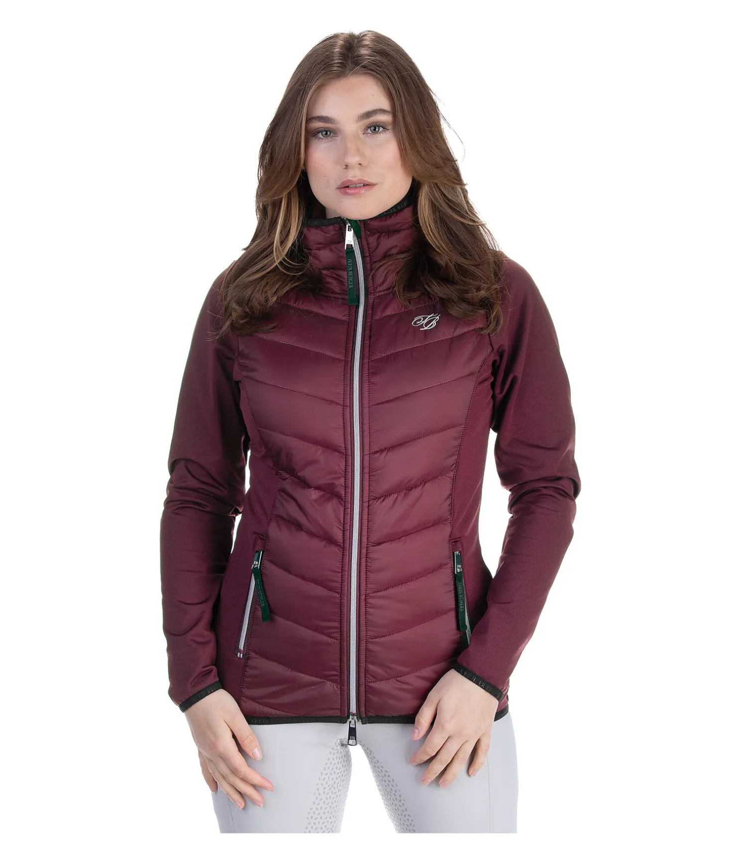 Veste d’équitation confortable en stretch Performance extensible. Face avant et col en nylon matelassé de grande qualité. 2 poches avant zippées. Fermeture à glissière double sens avec protège-menton. Broderie Felix Bühler sur la poitrine. Bord élastiqué en bas des manches, à la taille et au col avec inscription Felix Bühler. Face avant 100 % nylon, matière stretch 90 % polyester, 10 % élasthanne.