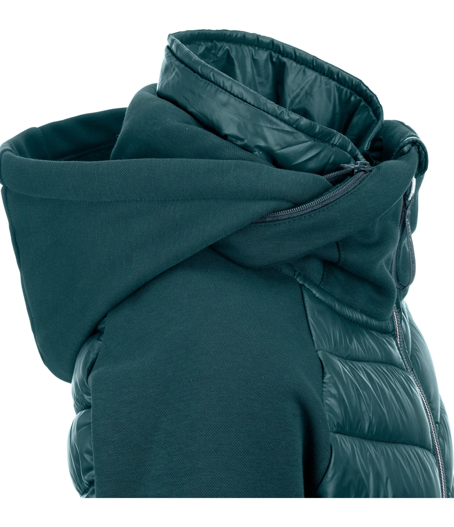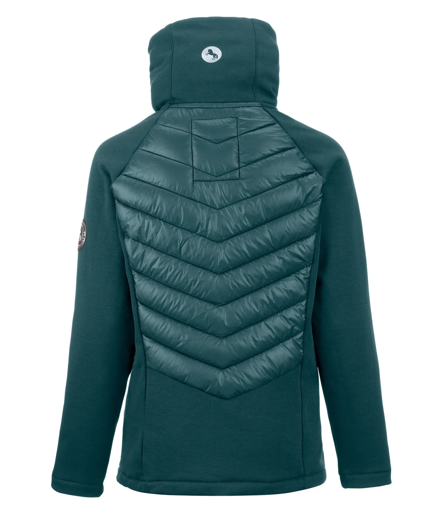 Veste d’équitation enfant associant parfaitement un stretch doux en coton mélangé avec un matelassage en nylon naturellement brillant à l’avant et dans le dos. Le stretch molletonné sur les côtés, aux manches et dans le dos est respirant. Col montant avec capuche rétractable. Badge Felix Bühler sur la manche. 2 poches latérales zippées dissimulées et fermeture à glissière double sens avec sous-patte et protège-menton. Bas des manches et taille élastiqués. Devant et dos : tissu extérieur 100 % nylon, doublure 100 % polyester. Côtés, manches, bas avant et dos 64 % polyester, 36 % coton.