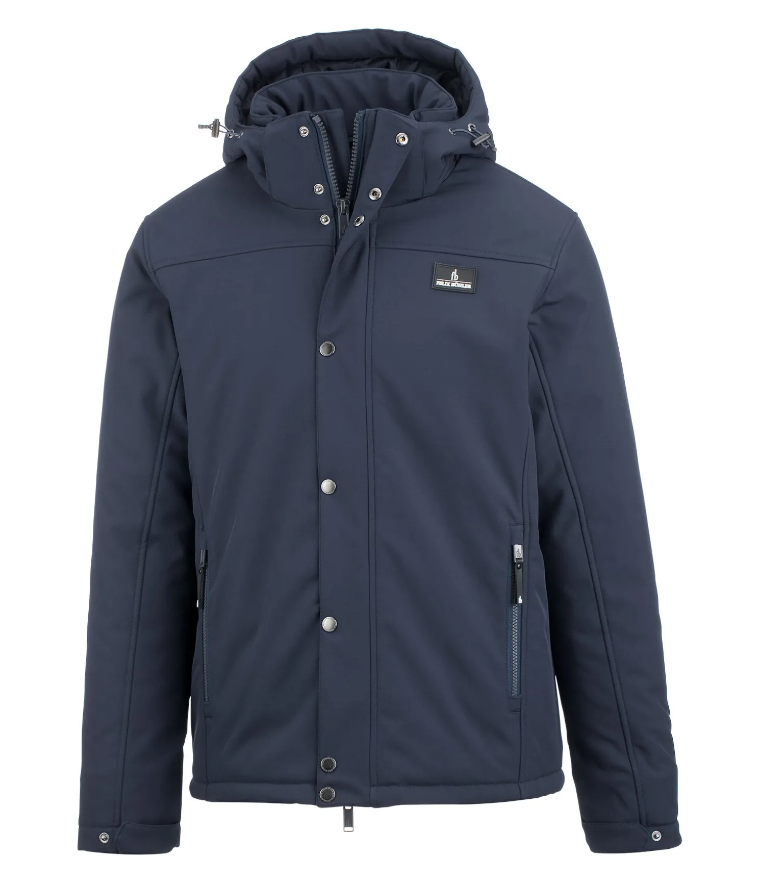 Veste softshell chaude avec col montant et capuche amovible. Matière déperlante, coupe-vent et respirante. Fermeture à glissière double sens dissimulée. 2 poches latérales zippées. Badge Felix Bühler sur la poitrine. Bas des manches élastiqué et ajustable. Taille avec cordon de serrage. 94 % polyester, 6 % élasthanne.