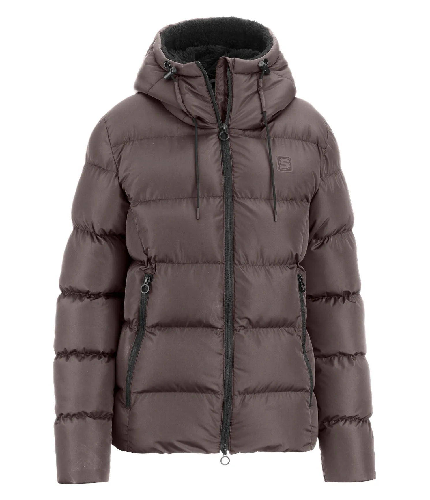 Veste matelassée chaude avec garnissage particulièrement doux imitation duvet. Capuche réglable extra haute et doublée en polaire Teddy avec bouton-pression pour être fixée dans le dos. Fermeture à glissière double sens avec sous-patte et protège-menton. 2 poches latérales zippées et 1 poche intérieure. Bord élastiqué sur le bas des manches et à la taille. Badge STEEDS sur la poitrine. 100 % polyester.