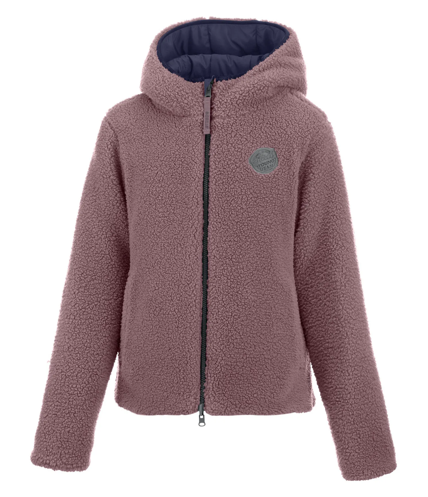 Veste d’équitation innovante pour enfant. Idéale par temps changeant. Une face en mélange doux sherpa-fourrure Teddy et l’autre dans un look matelassé moderne. Réversible. Le logo est visible sur chaque face. Avec fermeture à glissière de couleur assortie et 2 poches zippées. 100 % polyester.