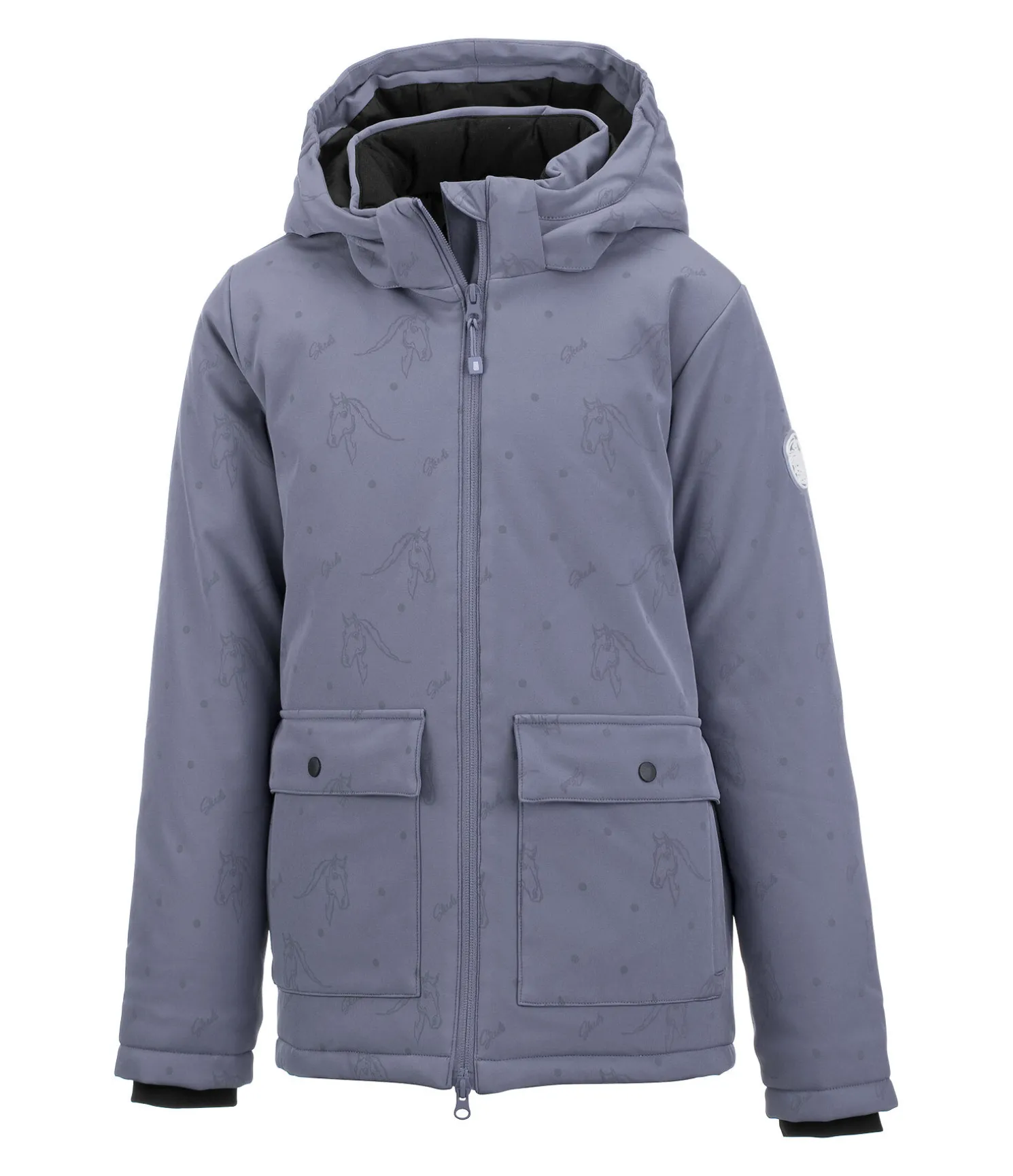 Veste softshell chaude avec imprimé réfléchissant all-over. Matière déperlante, coupe-vent et respirante. Col montant avec capuche. Bouton-pression pour fixer la capuche dans le dos. Fermeture à glissière double sens avec sous-patte et protège-menton. 2 poches à rabat avec bouton-pression et poches latérales. Bas des manches coupe-vent et élastiqué. Badge STEEDS sur la manche. 94 % polyester, 6 % élasthanne.