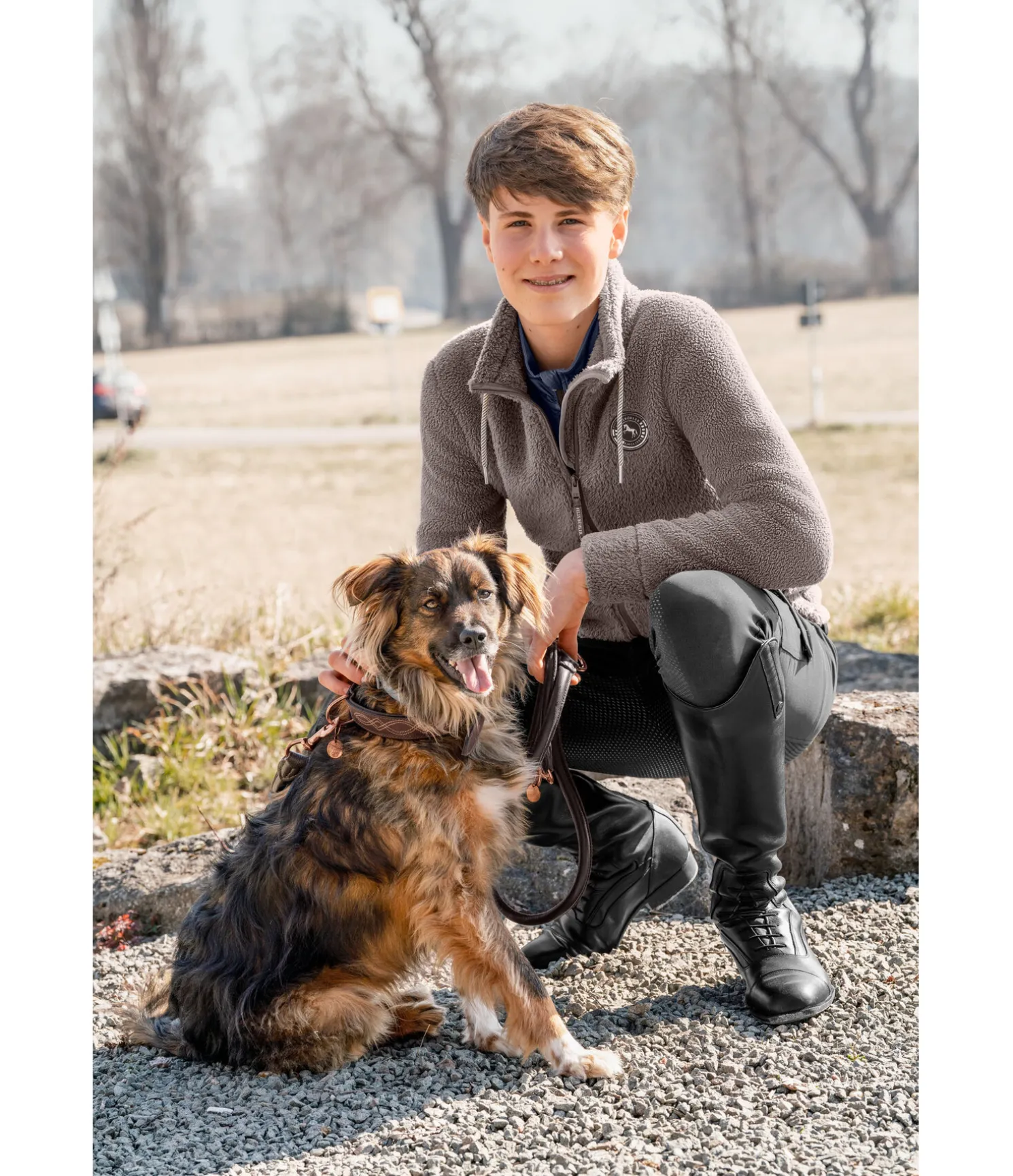 Veste polaire particulièrement douillette pour enfant avec col haut réglable par cordon de serrage. Fermeture à glissière double sens avec sous-patte et protège-menton, 2 poches zippées devant, badge Felix Bühler sur la poitrine et bas des manches large. 100 % polyester.