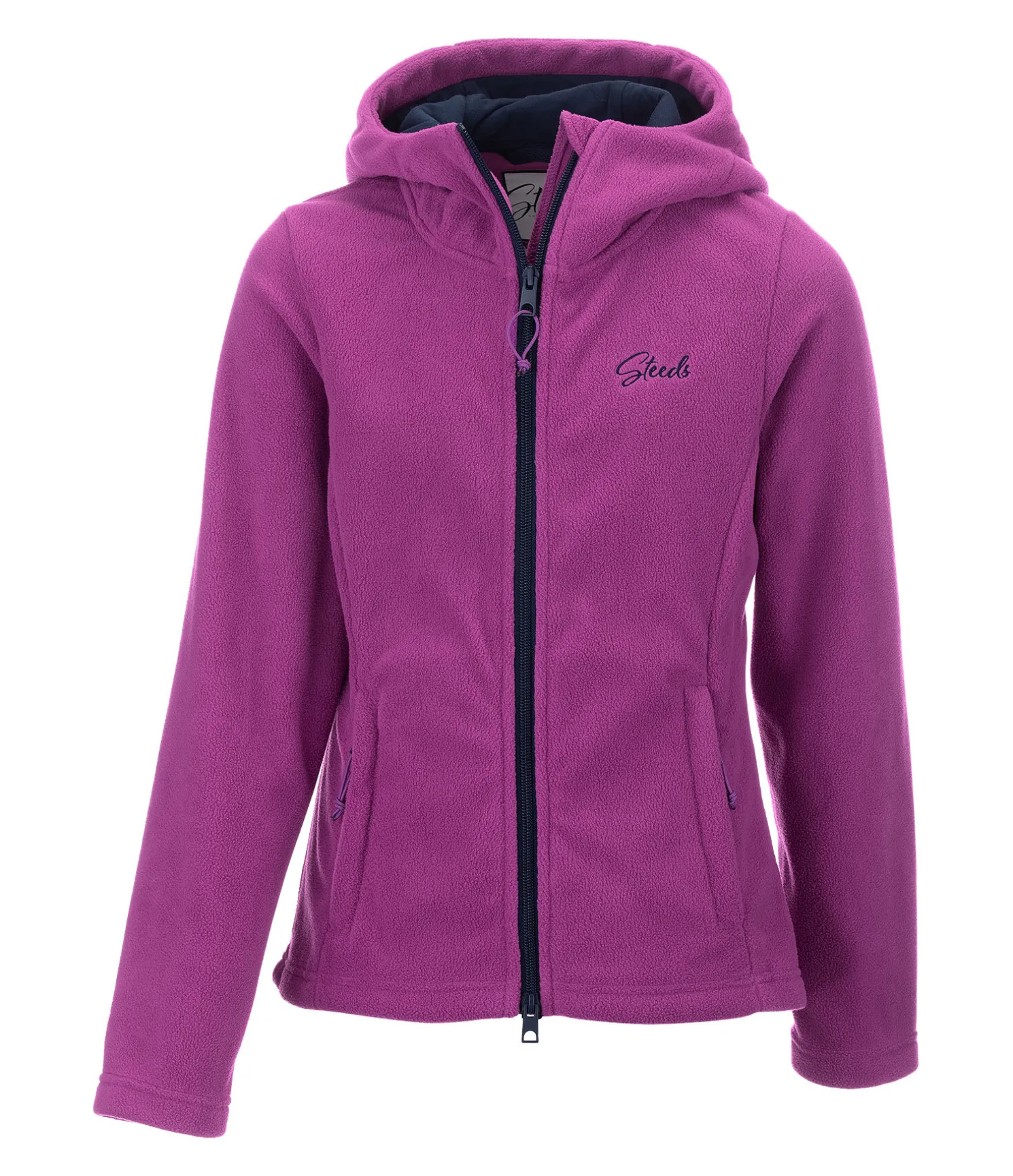 Veste en polaire avec capuche doublée de couleur contrastante. Coupe plus longue à l’arrière. Fermeture à glissière bidirectionnelle avec protège-menton. Deux poches zippées dissimulées. Broderie STEEDS sur la poitrine. Tissu polaire : 100 % polyester, doublure de la capuche 95 % coton, 5 % élasthanne.