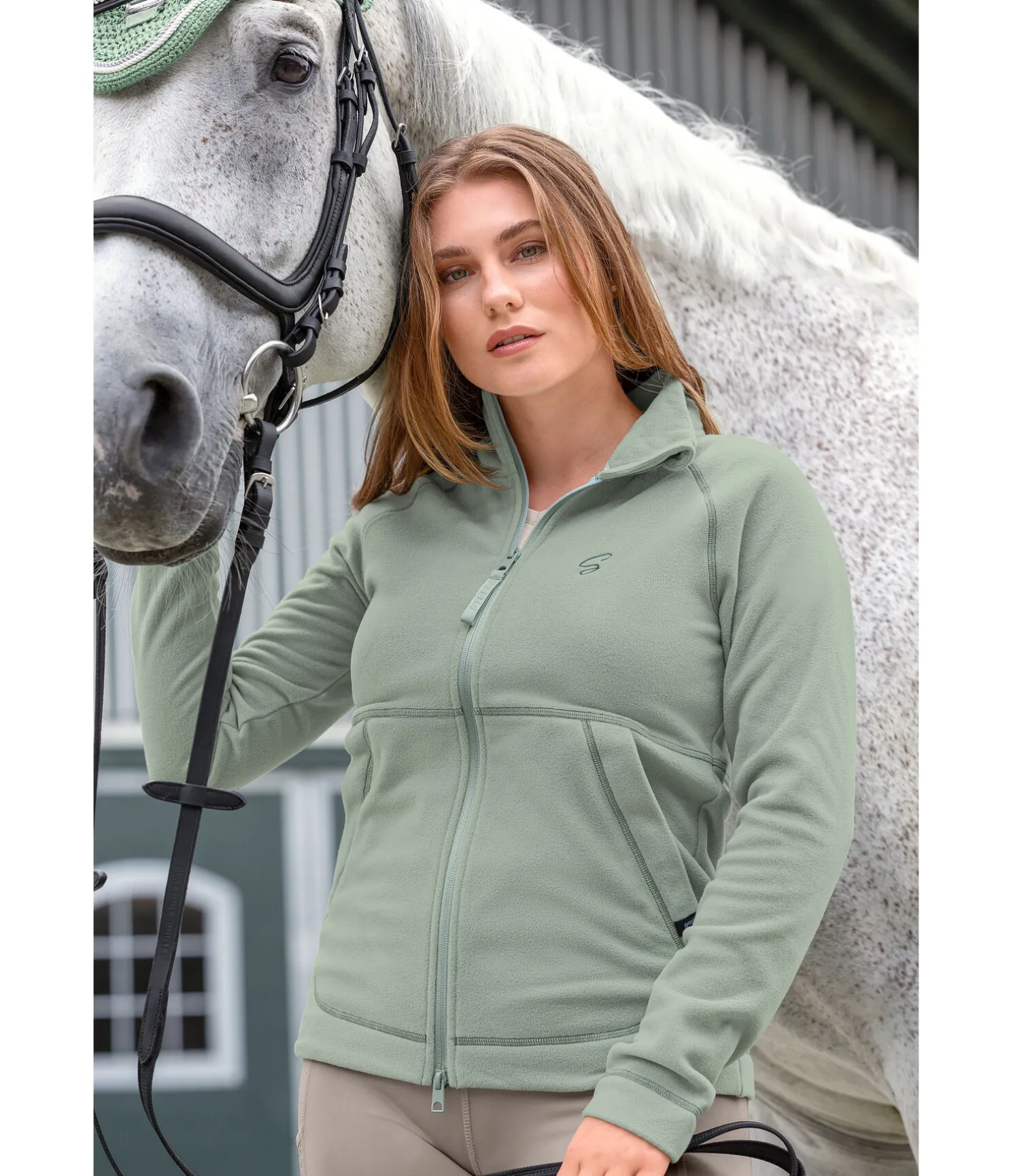 Veste polaire douce et chaude avec col montant. Fermeture à glissière double sens avec sous-patte et protège-menton. Deux poches latérales zippées. Broderie logo discrète sur la poitrine. Traitement anti-bouloches. 100 % polyester.