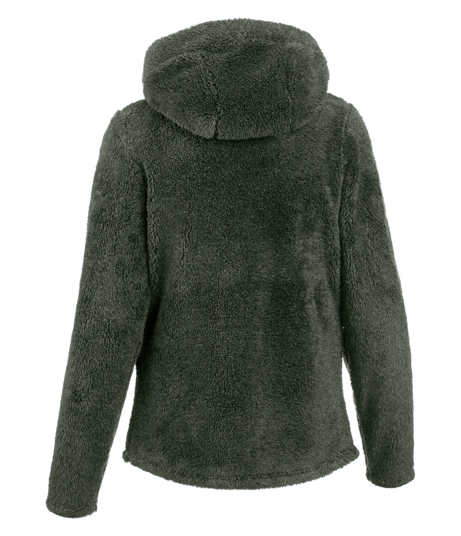 Veste à capuche extra douillette avec aspect peluche. Capuche haute. Extensible. Fermeture à glissière double sens devant. 2 poches zippées devant. Broderie Felix Bühler sur la poitrine. 100 % polyester.