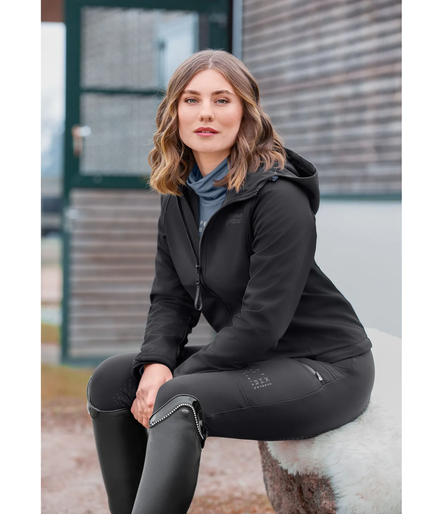 Veste softshell courte tendance. Coupe-vent et déperlante. Capuche, taille et bas des manches réglables, fermeture à glissière double sens étanche avec sous-patte et protège-menton, 2 poches zippées dissimulées devant. Intérieur en polaire douillette. Broderie Felix Bühler devant. 90 % polyester, 10 % élasthanne.