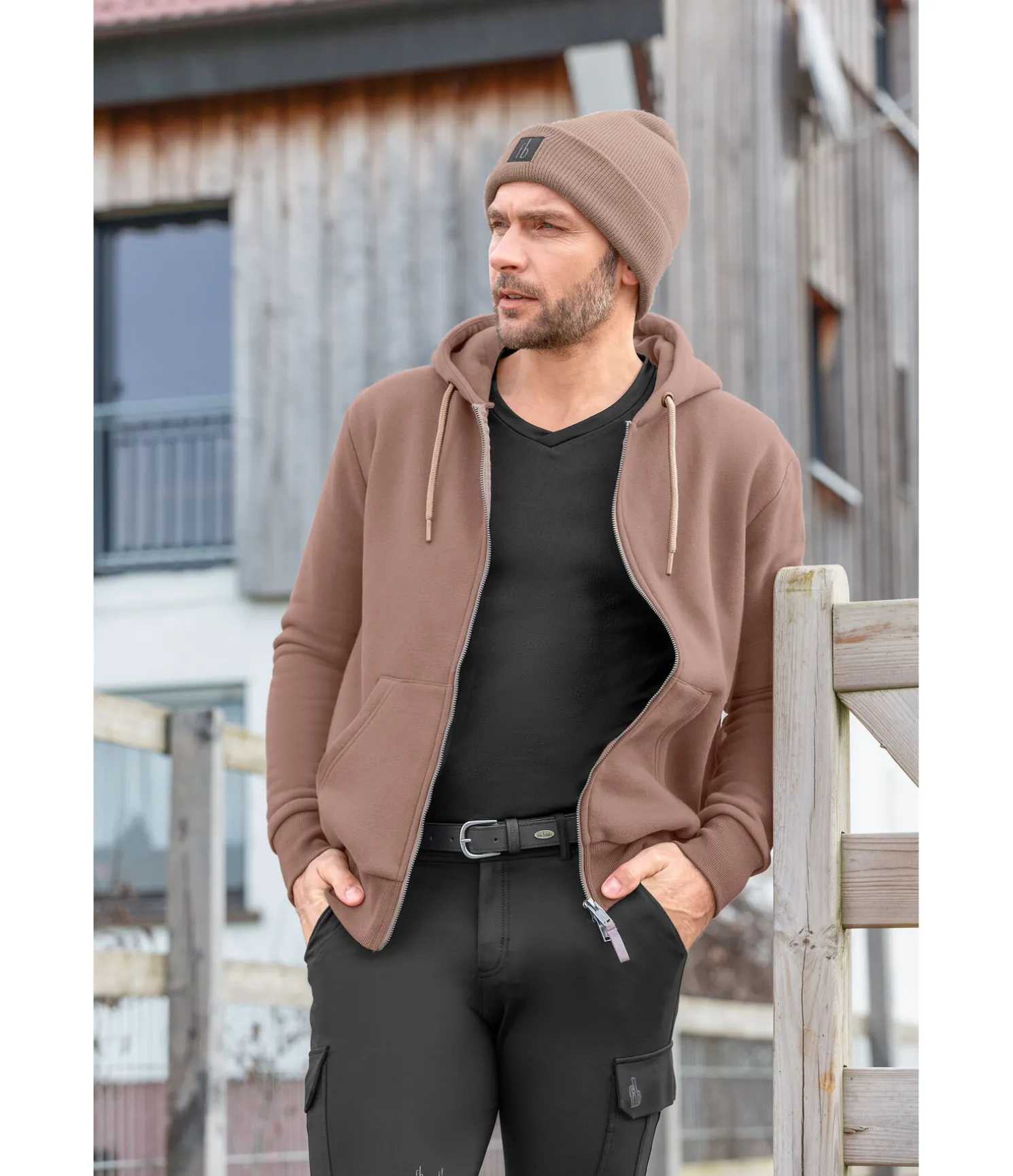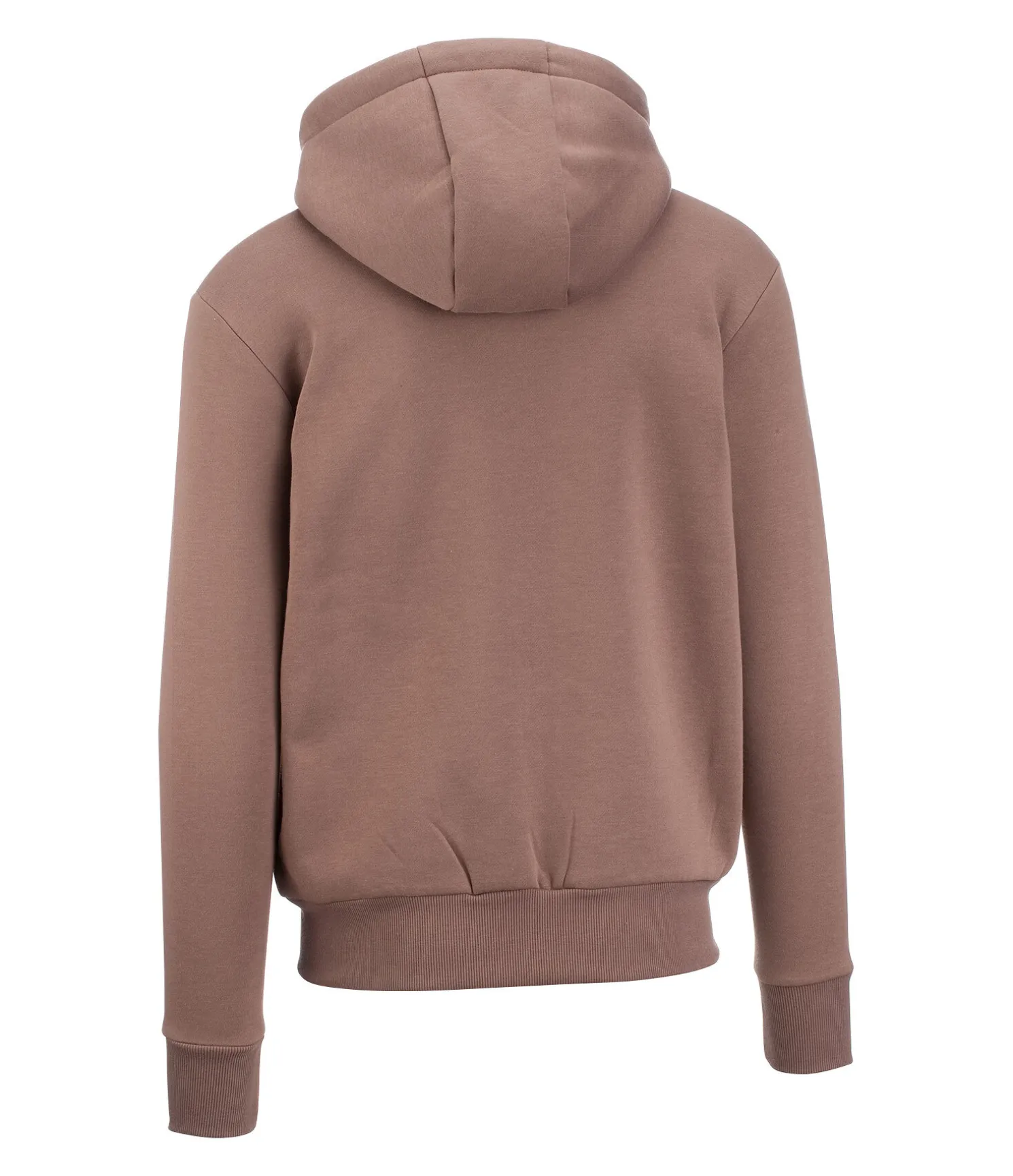 Veste sweat à capuche douce et sportswear en coton stretch de grande qualité. 2 poches avant. Finition douce en bord-côte sur le bas des manches et l’ourlet. Logo discret et nuancé sur la poitrine. 65 % polyester, 35 % coton.