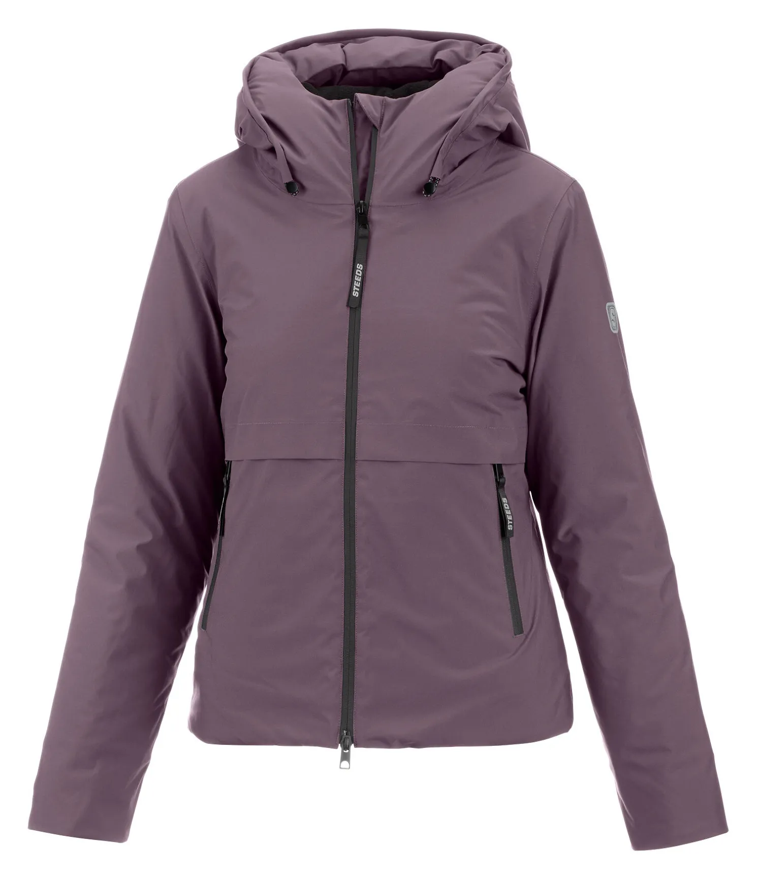 Veste d’équitation à capuche très technique dans une coupe sportive avec doublure chaude en polaire douce. Très imperméable (10.000 mm), coupe-vent et respirante (5.000 MVP). Fermeture à glissière double sens étanche, 2 poches zippées étanches devant, logo STEEDS réfléchissant sur le bras et dans le dos. Capuche réglable doublée en polaire pouvant être fixée dans le dos. Matière : 100 % polyester.