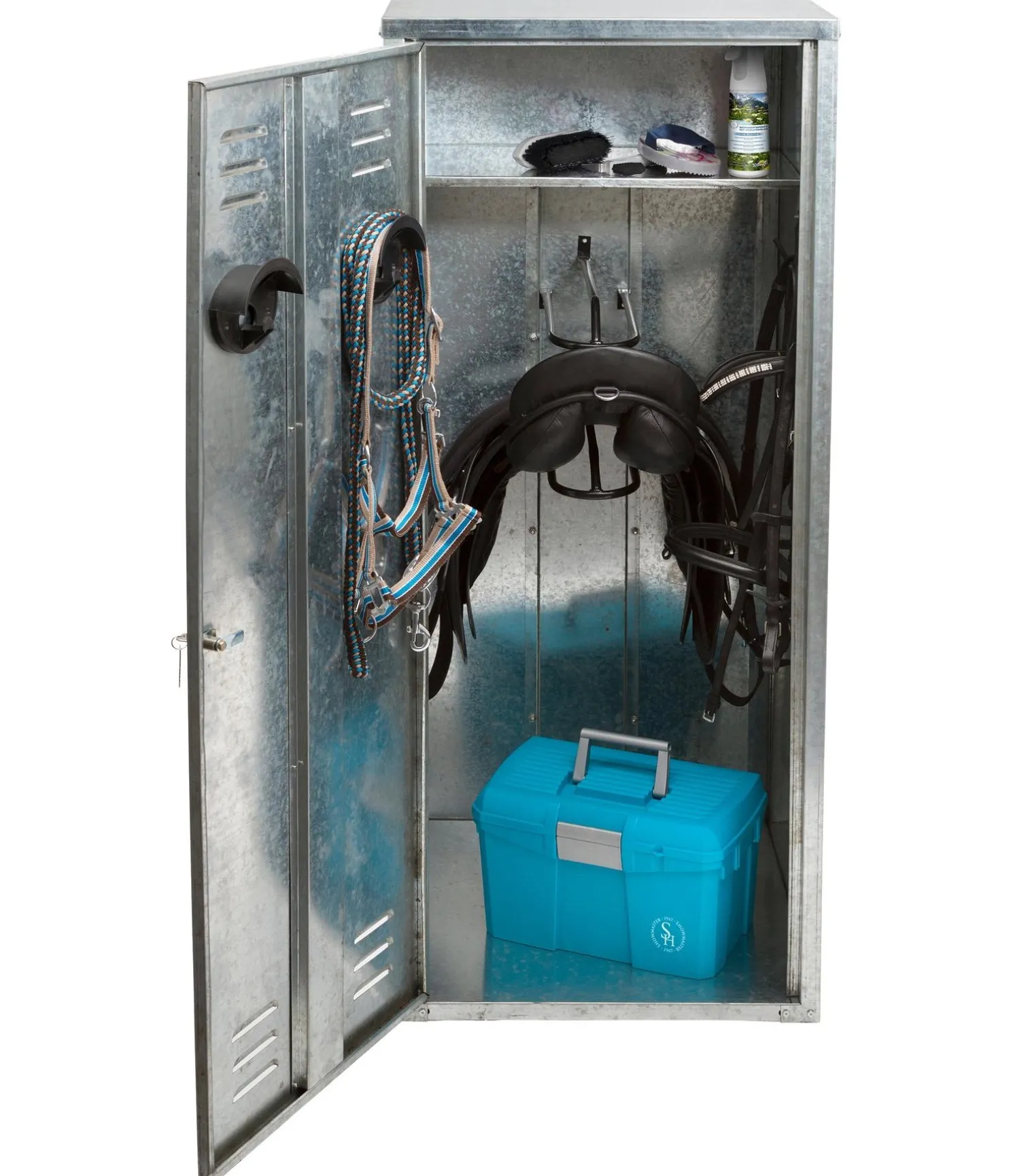 Ce colis ne comprend que les parties latérales, la paroi arrière et la porte. Dimensions 150 x 60 x 60 cm. Ne peut être vendu que avec la partie 2 référence 4505622 ! Prix de la grande armoire à selles complète 269 euros.