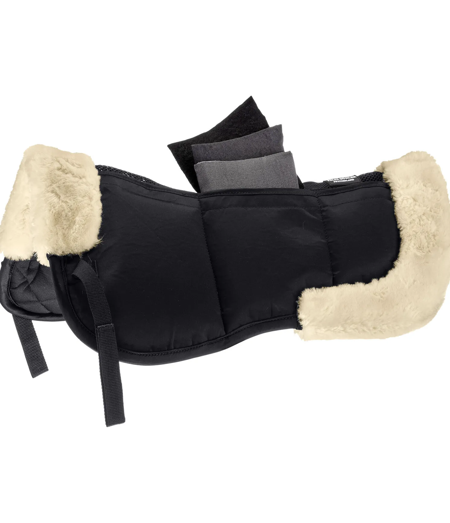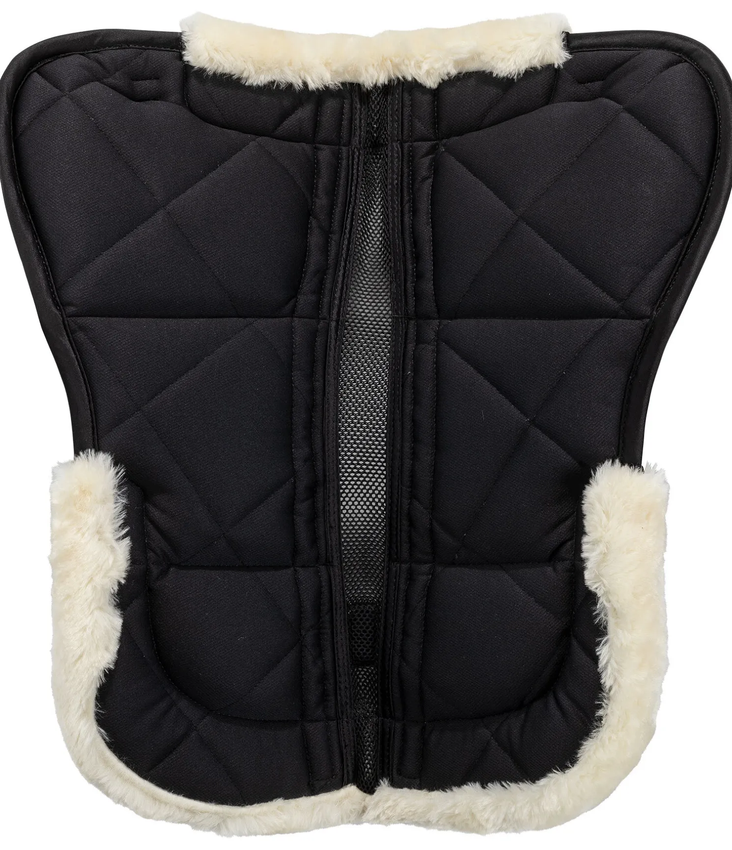 Élégant amortisseur offrant la possibilité de corriger la position de la selle grâce aux différents inserts. 6 poches avec fermeture par patte auto-agrippante. Chaque poche contient 2 pads en feutre et un pad en mousse à mémoire de forme pouvant être utilisés séparément. Bordure douce en polaire Teddy au niveau des matelassures et du garrot, ainsi qu’un empiècement en tissu mesh extrêmement respirant le long de la colonne vertébrale pour une circulation permanente de l’air. Dessous en Air Mesh respirant et absorbant l’humidité. 100 % polyester. Retirer les inserts amovibles avant lavage.