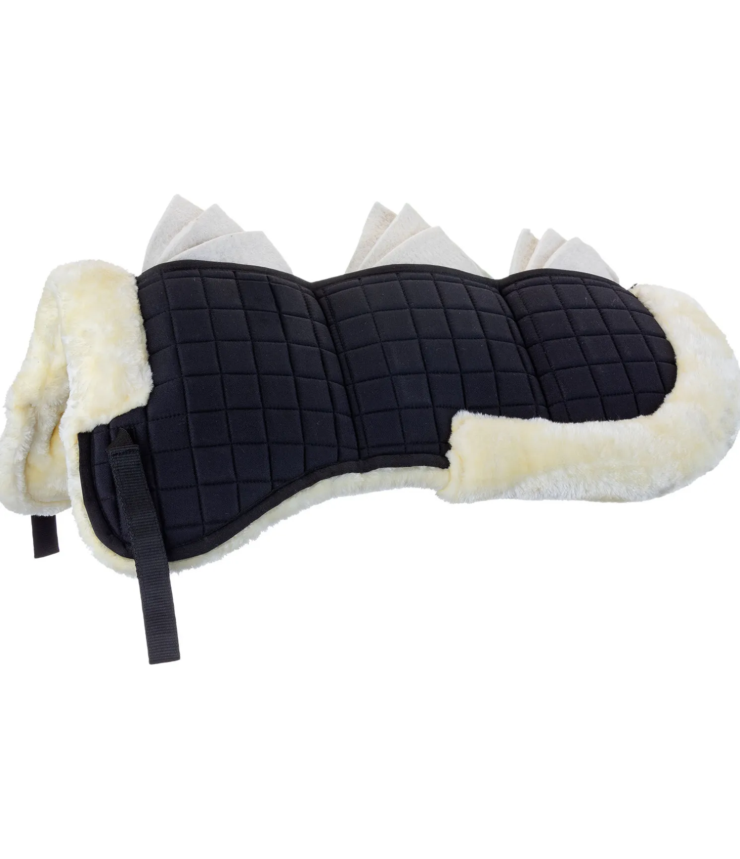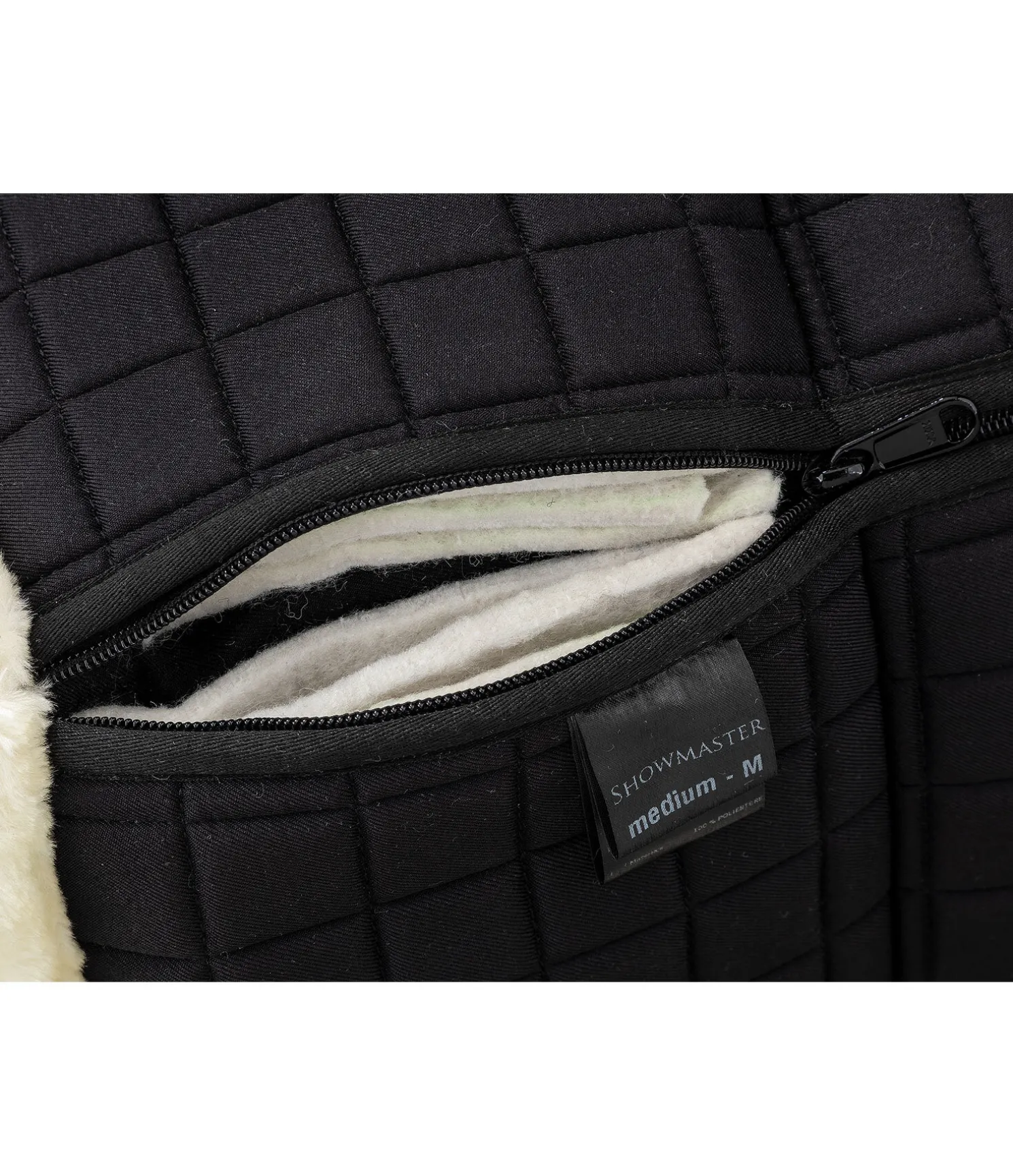 Amortisseur offrant la possibilité de corriger la position de la selle grâce aux différents inserts. 6 poches avec fermeture à glissière. Chaque poche contient 3 pads en feutre pouvant être utilisés indépendamment. Bordé et entièrement doublé de polaire Teddy douce. Passants de contre-sanglons avec patte auto-agrippante. 100 % polyester. Longueur du dos : S (pour poneys) = 44 cm, M (pour chevaux) = 51 cm.