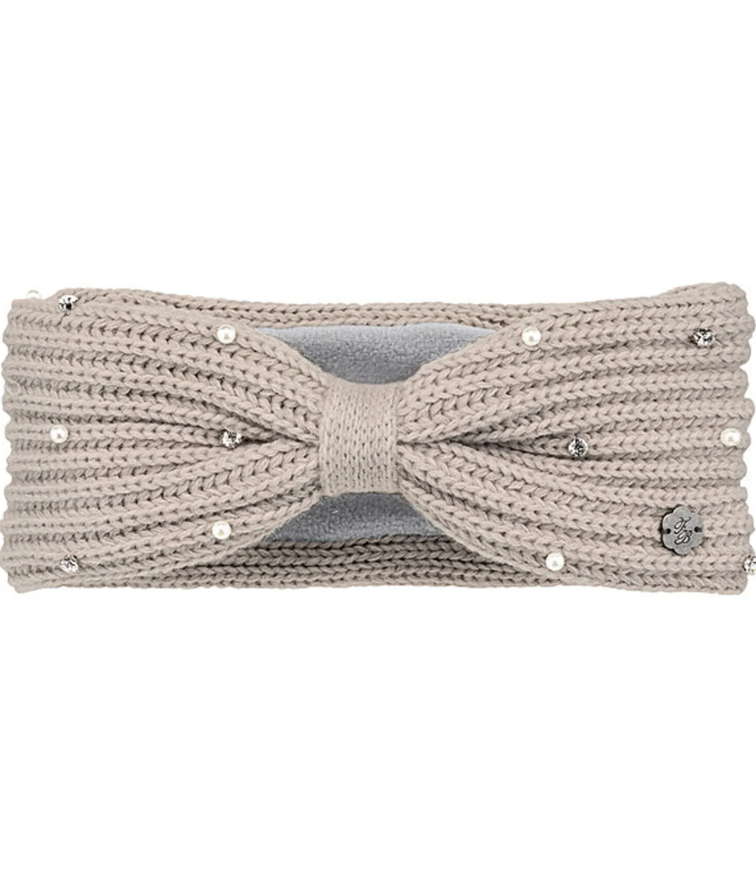 Élégant bandeau doux avec strass et perles sur le devant. Doublure en polaire extra-douce. Extérieur 100 % polyacrylique, intérieur 100 % polyester. Lavage à la main.