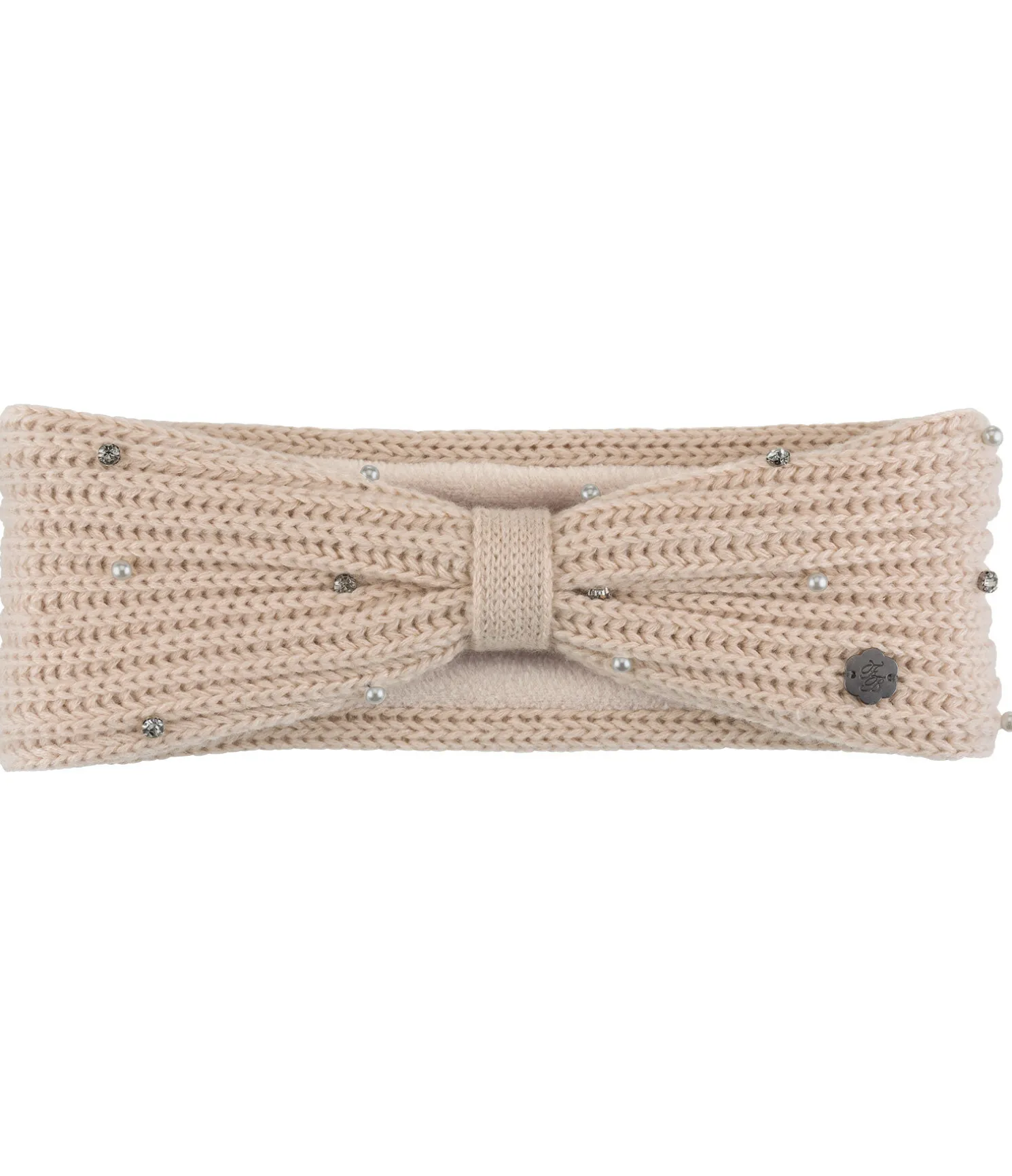 Élégant bandeau doux avec strass et perles sur le devant. Doublure en polaire extra-douce. Extérieur 100 % polyacrylique, intérieur 100 % polyester. Lavage à la main.