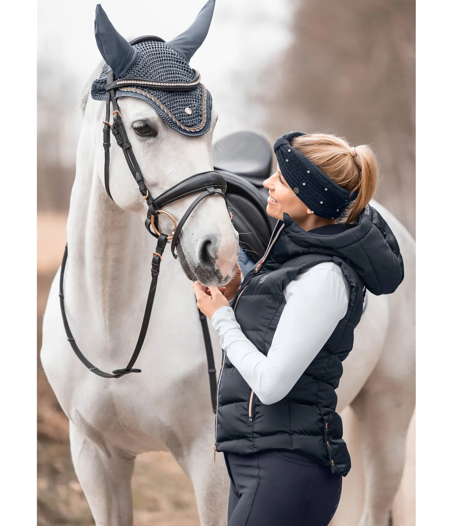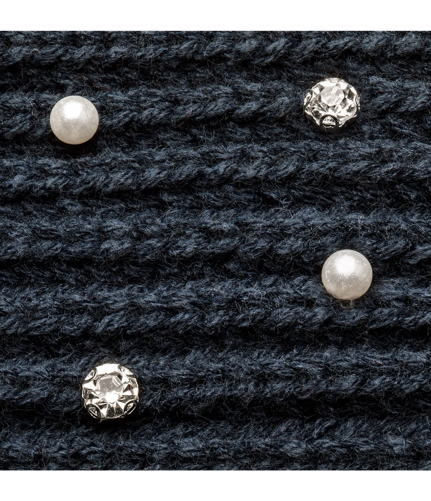 Élégant bandeau doux avec strass et perles sur le devant. Doublure en polaire extra-douce. Extérieur 100 % polyacrylique, intérieur 100 % polyester. Lavage à la main.