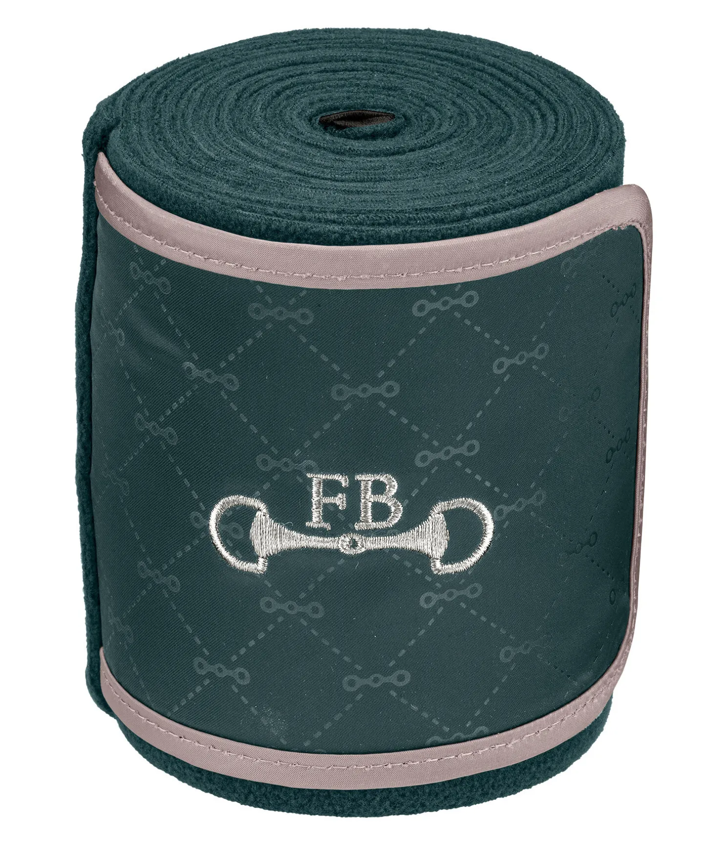 Bandes en polaire avec large insert en tissu satiné et motif de mors. Bordure en tissu de couleur contrastante. Petit mors brodé avec logo Felix Bühler. 100 % polyester. F (cheval) : 300 x 11 cm P (poney) : 200 x 8 cm. Vendues par lot de 4.