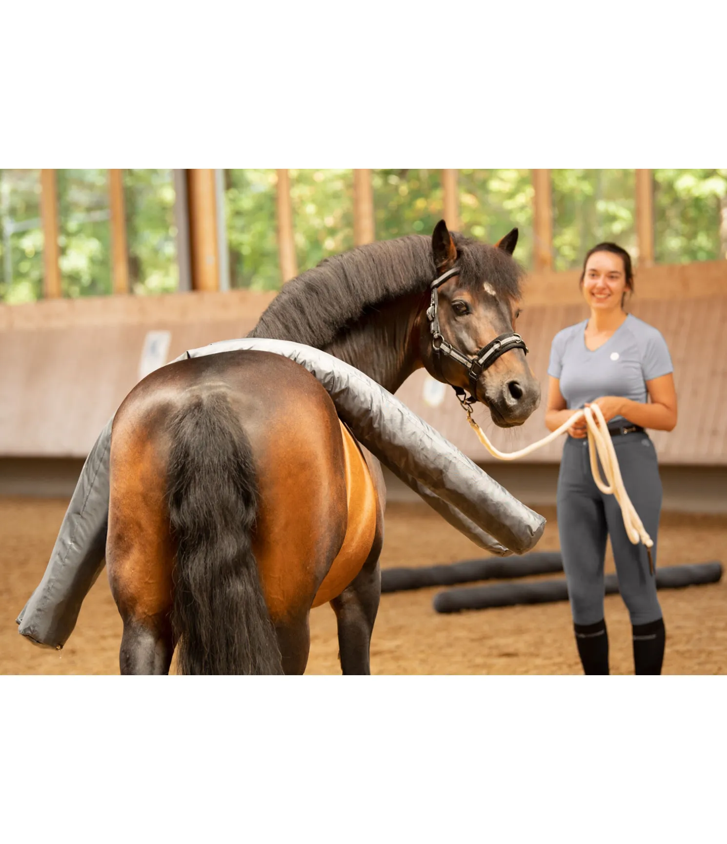 Barre multifonction pour le travail à pied et l’entraînement quotidien. Peut être utilisée comme barre au sol ou délimitation de l’espace de travail. La fermeture à glissière à l’une des extrémités permet de remplir la barre de paille, de mousse, de copeaux de bois, etc. en fonction de l’utilisation. Longueur : 2 m, diamètre : 12 cm. Ce produit doit de préférence être stocké à l’intérieur et doit être protégé de manière appropriée s’il est stocké à l’extérieur. Une exposition continue aux rayons UV et à la chaleur peut provoquer une décoloration de la housse.