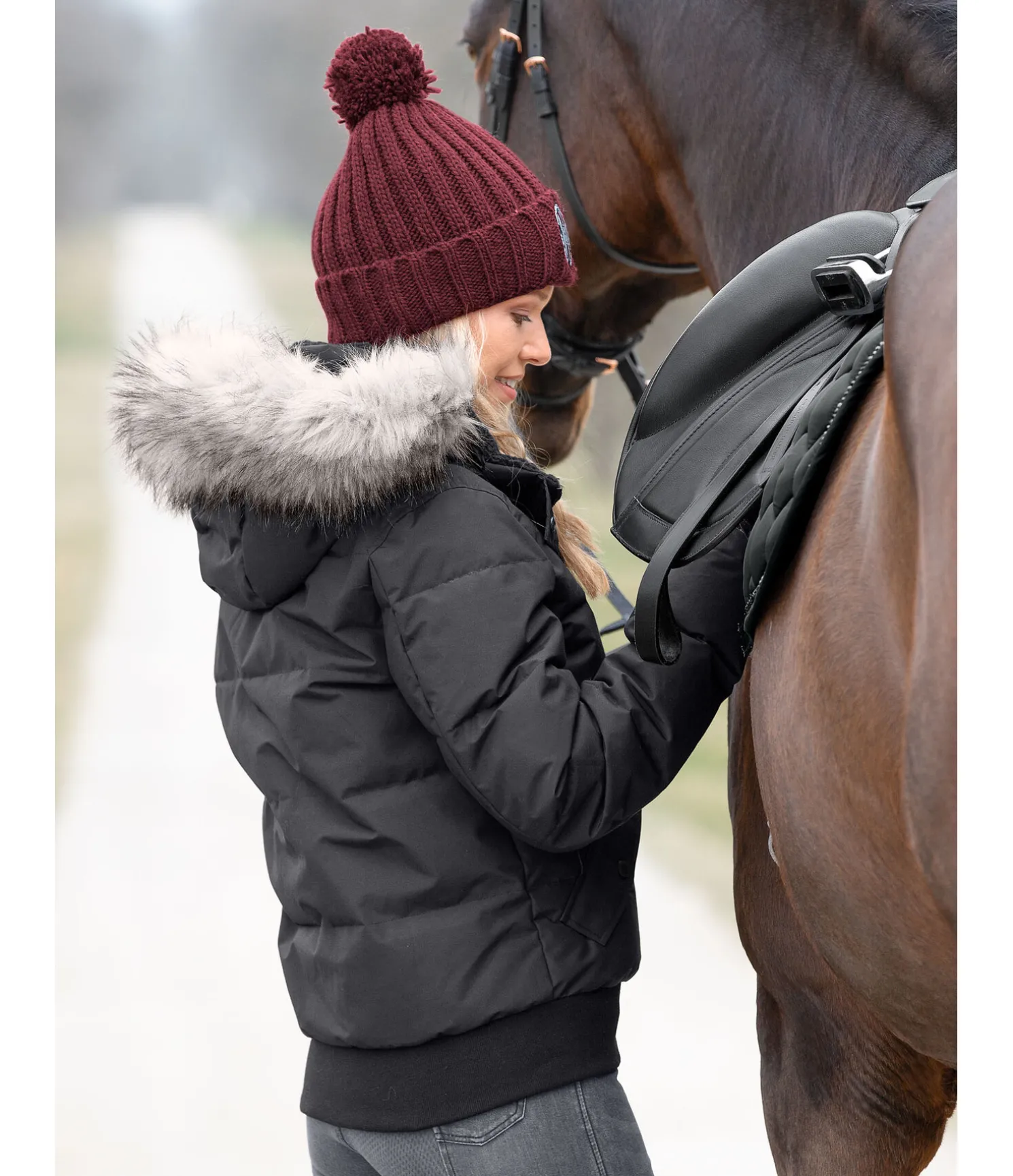 Blouson d’équitation matelassé sportswear, déperlant et coupe-vent. Capuche amovible et réglable avec bordure en fourrure synthétique amovible. Garnissage chaud imitation duvet. Doublure en sherpa à l’intérieur du col et de la capuche. Fermeture à glissière double sens dissimulée avec protège-menton. Deux poches latérales avec boutons- pression et une poche zippée sur la poitrine. Finition en bord-côte en bas des manches et à la taille. Motifs gaufrés discrets à l’intérieur. Poches doublées en polaire. 100 % Polyester.