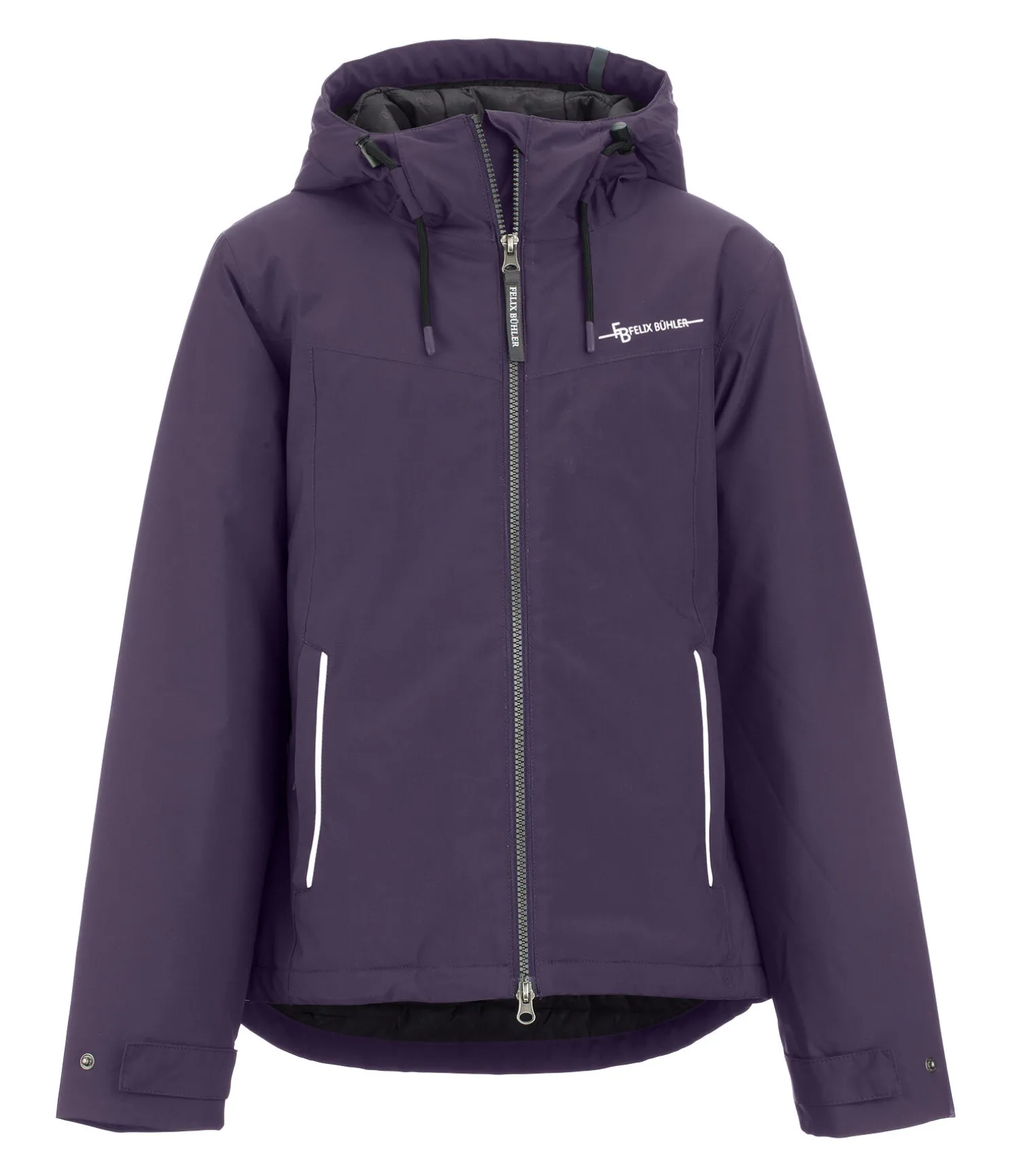 Blouson d’équitation court très technique avec capuche. Garnissage chaud en imitation duvet. Très imperméable (10.000 mm), coupe-vent et respirant. 2 poches zippées, fermeture à glissière double sens avec sous-patte, taille réglable, capuche ajustable par cordon de serrage, bas des manches réglable. Imprimé Felix Bühler réfléchissant sur la poitrine. 100 % polyester, doublure 100 % nylon.