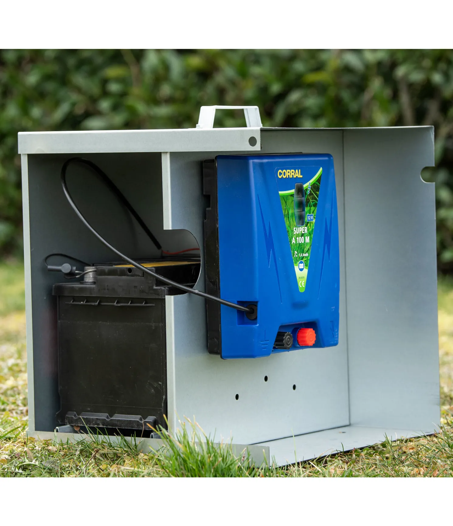 Fini les protections bricolées et improvisées. Voici le boîtier idéal pour ranger un électrificateur 12 volts ainsi que sa batterie. Tout votre matériel est bien rangé et à l’abri des intempéries. Dimensions intérieures : largeur 36 cm, hauteur 32 cm, profondeur 20 cm. Pour ranger des batteries jusqu’à 110 Ah.