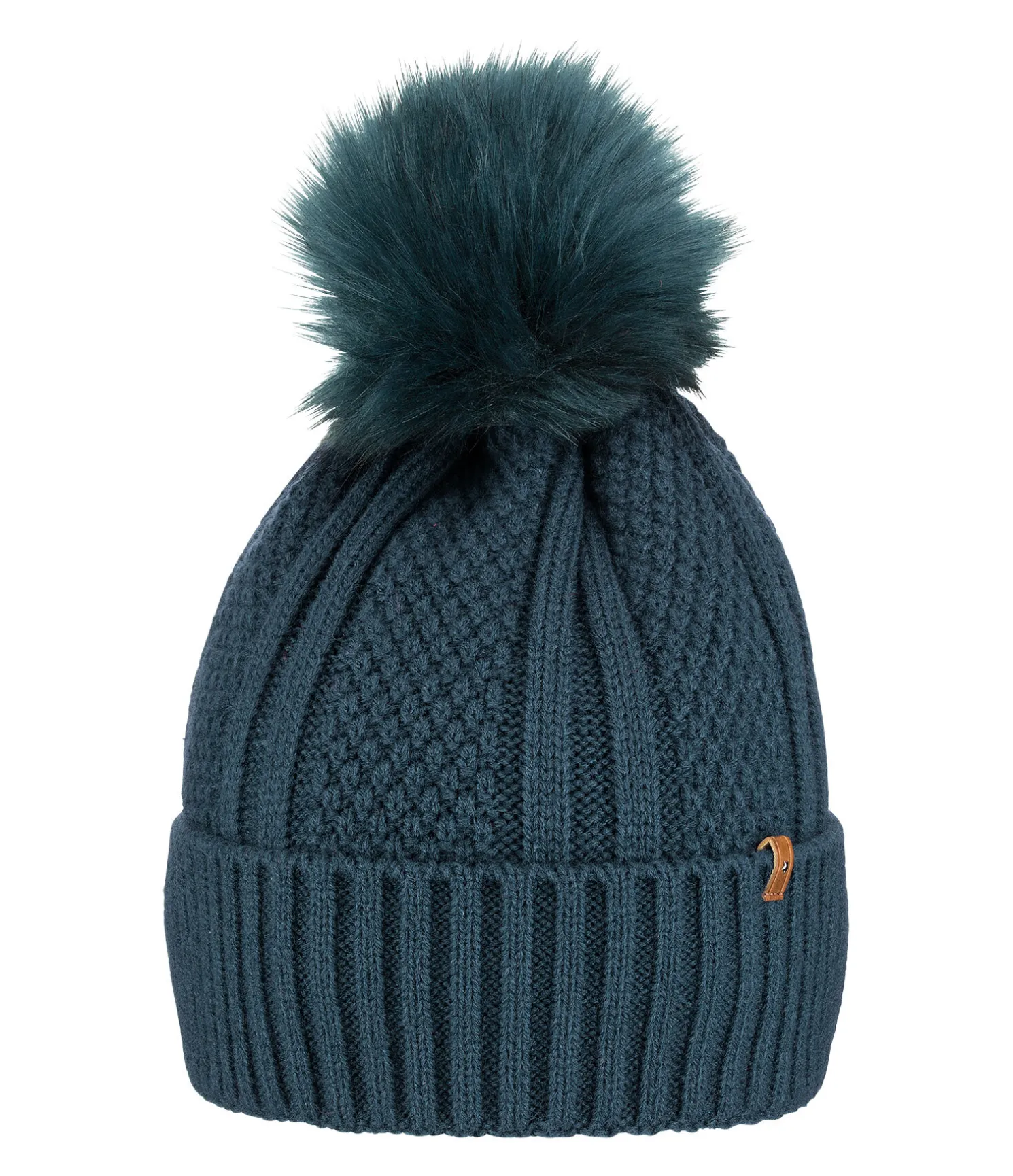 Bonnet à revers en maille avec pompon en fourrure synthétique. Doublure intérieure en polaire chaude. 100 % polyacrylique, doublure 100 % polyester.