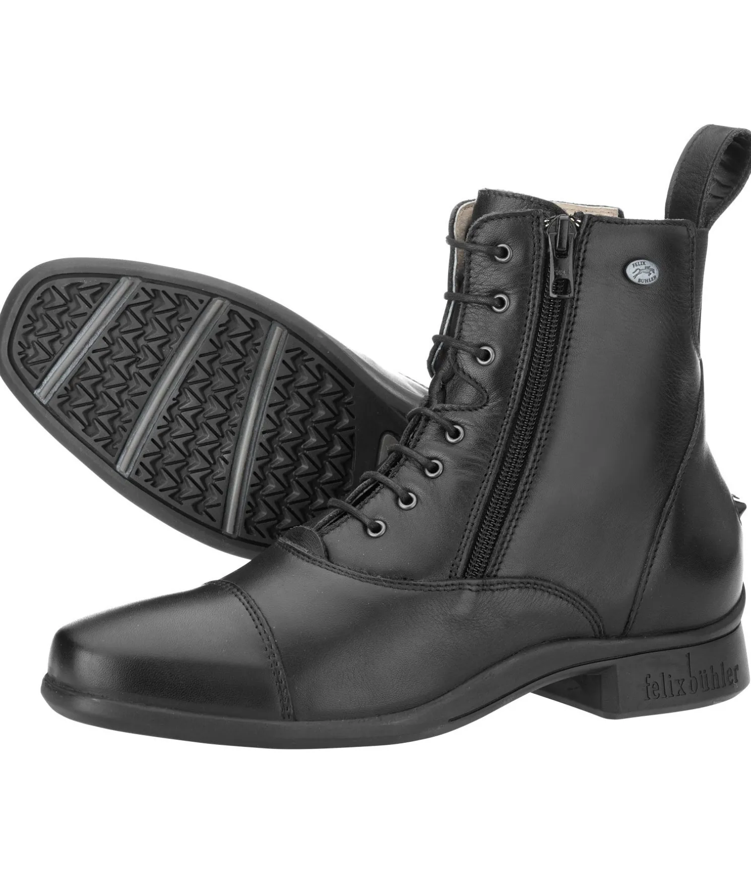 Bottines à lacets. Sportswear. Cuir de vachette italien. Fermeture à glissière latérale pour faciliter l’enfilage et retrait. Semelle extrêmement confortable grâce à la technologie Comfort Footbed. Semelle intérieure multicouche offrant un excellent amorti. Semelle extérieure spécialement conçue pour permettre une adhérence optimale dans l’étrier. Doublure intérieure douce en cuir de porc. Semelle cousue à la chaussure. Taquets d’éperon et tirant en cuir. Fabriquées au Portugal.