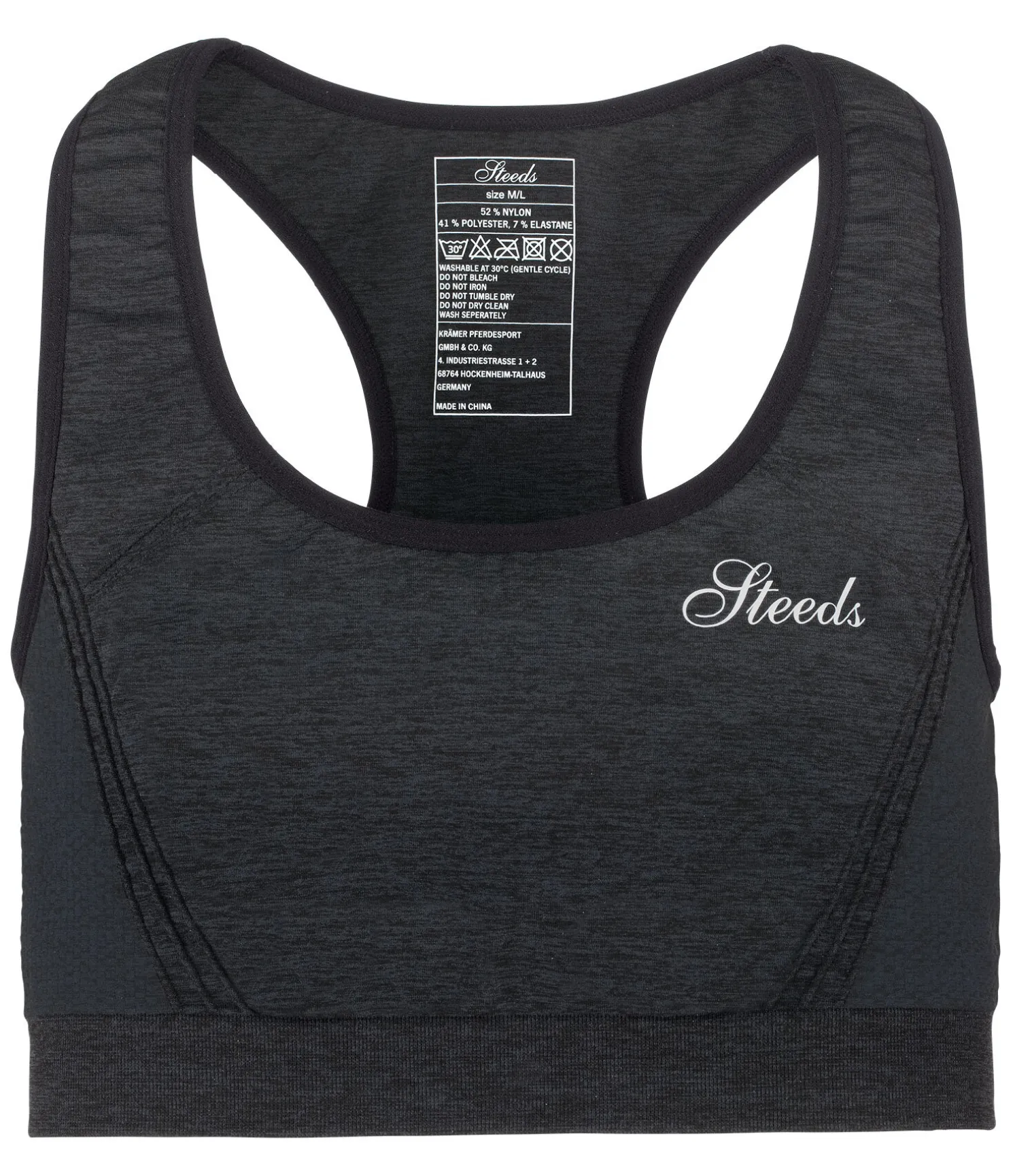 Brassière de sport technique à séchage rapide. Aspect chiné. Dos nageur. Large bande élastique sous la poitrine. Soutien moyen. 52 % nylon, 41 % polyester, 7 % élasthanne.
