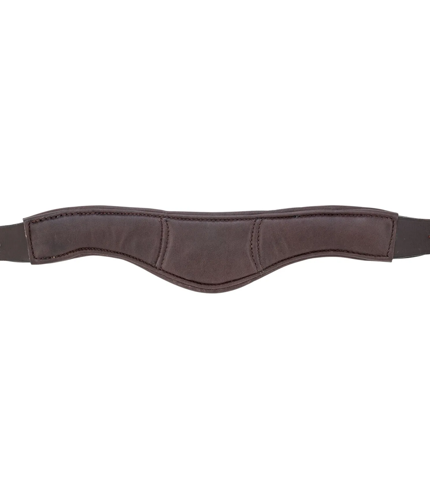 Bridon particulièrement doux avec muserolle allemande. Têtière anatomique. Frontal vague orné de petits strass scintillants. Têtière, frontal et muserolle avec doublure moelleuse en cuir véritable. Bouclerie argentée. Sans rênes et sans mors.