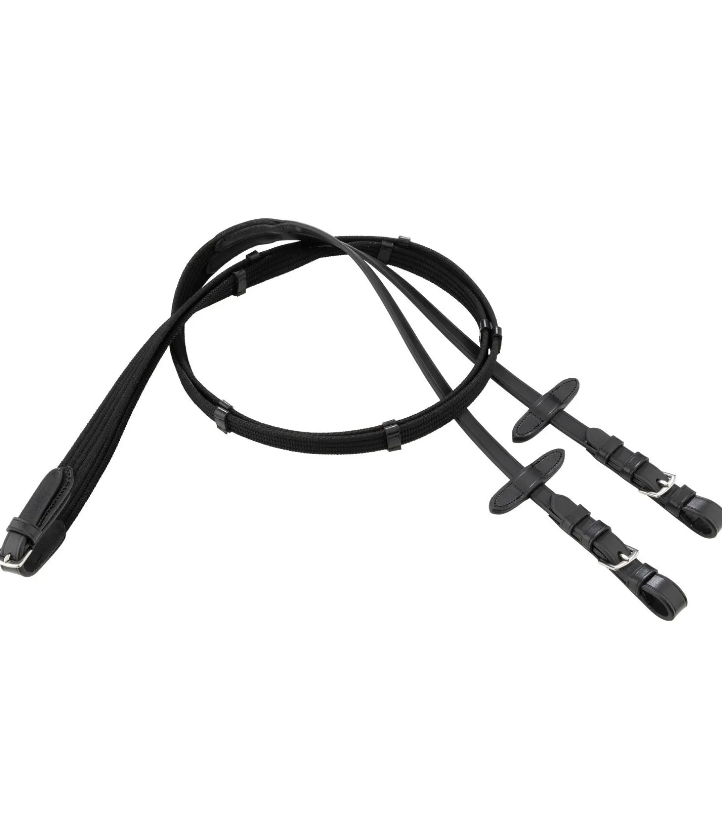 Bridon avec muserolle française combinée et frontal vague avec petits strass blancs discrets.Têtière et muserolle avec doublure douce pour un confort optimal. Conçu en cuir véritable. Bouclerie argentée. Avec rênes sangle, sans mors.