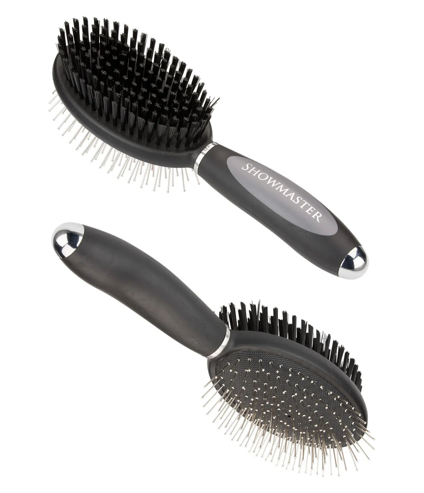 Un côté avec de solides pointes en acier pour peigner la crinière et la queue et l’autre côté avec des poils en synthétique pour retirer la poussière et la saleté. Poignée ergonomique en plastique. 23 x 7 cm.
