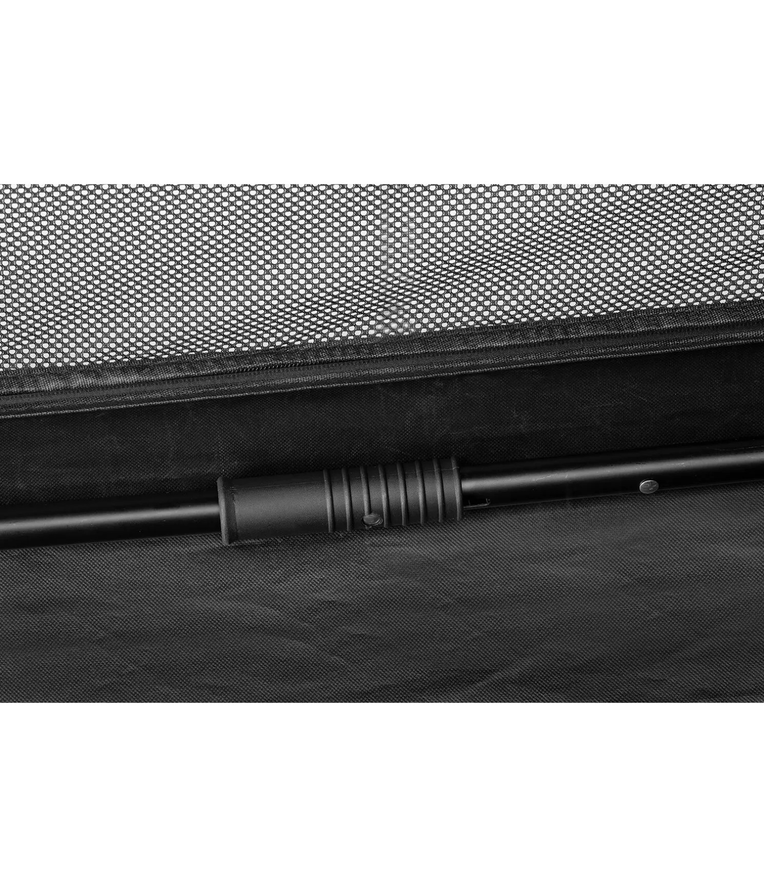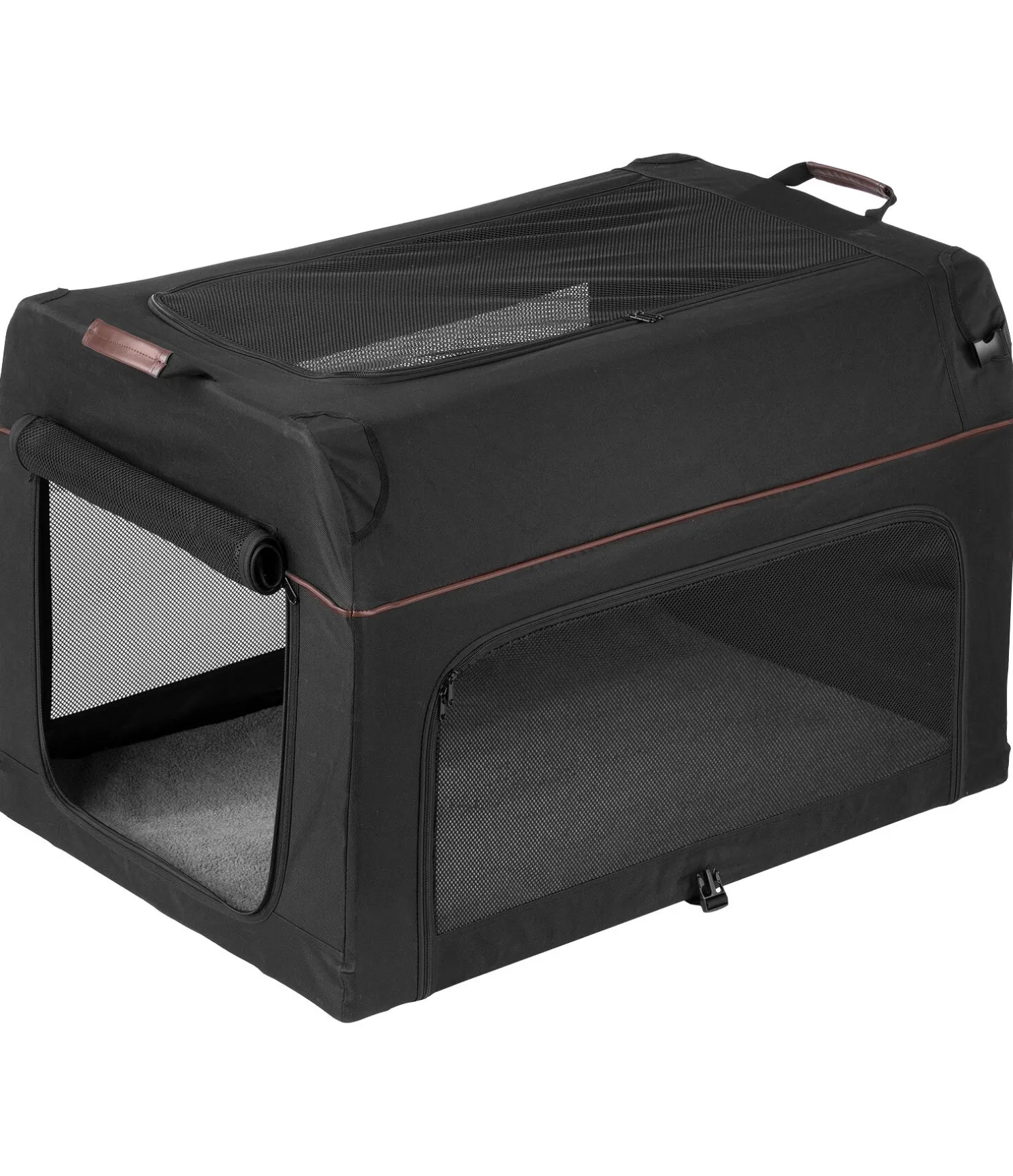 Idéale pour le coffre et la banquette arrière de la voiture ou comme niche lors des déplacements. Caisse de transport pliable et peu encombrante en polyester Oxford 600 deniers robuste et déperlant. La caisse dispose d’une armature métallique solide. Les deux armatures métalliques situées sur le côté long en haut de la caisse disposent d’un ressort pour être tournées et emboîtées fermement. Se plie et se déplie en quelques secondes seulement. Des clips permettent de garder la caisse pliée et peut être facilement transportée grâce aux poignées. Laisse et jouets trouveront leur place dans la petite poche à fermeture par patte auto-agrippante cousue sur un des côtés. Trois portes en filet laissent passer la lumière et s’ouvrent et se ferment par fermeture à glissière. Inclus une couverture sherpa assortie pour apporter de la douceur. Les 4 pieds caoutchoutés empêchent la caisse de glisser sur des surfaces lisses. Si la caisse est utilisée comme moyen de transport lors d’un voyage en voiture, il est recommandé de la fixer pour plus de sécurité ! En outre, il faut choisir une taille de caisse adaptée à ton chien ; elle ne doit pas être trop grande afin de réduire au maximum le risque de blessure pendant le trajet. 100 % polyester.