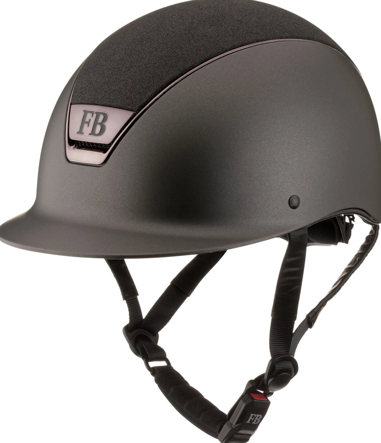 Casque d’équitation Felix Bühler haut de gamme avec décor scintillant. Pour garantir un niveau de sécurité maximal, ce casque est doté de la technologie Hardshell avec une coque extérieure résistante aux chocs. Les ouvertures à l’avant assurent une aération optimale sur l’ensemble de la tête grâce à des canaux de ventilation internes passant de l’avant à l’arrière du casque. La doublure intérieure absorbant l’humidité est amovible et lavable à 30°C. Le casque dispose d’une fermeture magnétique innovante pour une ouverture à une seule main, facile et rapide. Grâce à la fonction Easy-Lock/No-Unlock, l’aimant verrouille l’attache dès que la boucle est approchée du fermoir. L’ouverture accidentelle du fermoir en tirant ou en tournant la boucle est impossible. Celle-ci peut être déverrouillé uniquement en appuyant fermement sur le bouton Unlock situé sur le côté. La molette à l’arrière du casque offre un ajustement précis et individuel, au millimètre près, à la circonférence de la tête. Les sangles recouvertes soulignent le design raffiné du casque et disposent de coussinets au niveau de la nuque et du menton pour garantir un confort de port optimal au cavalier. Ce casque d’équitation est certifié selon la norme EN1384:2023.