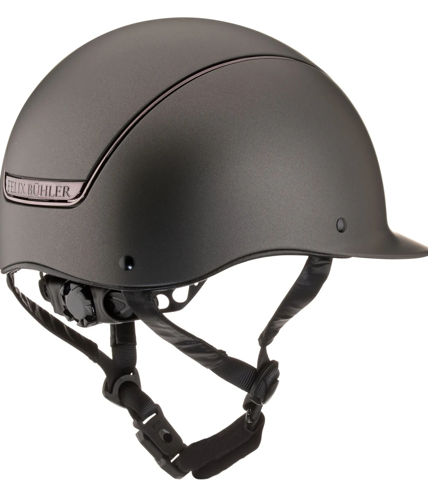 Avec ses nombreuses innovations, ce casque d’équitation Felix Bühler haut de gamme se distingue par sa légèreté et son design élégant. Pour garantir un niveau de sécurité maximal, ce casque est doté de la technologie Hardshell avec une coque extérieure résistante aux chocs. Les ouvertures à l’avant assurent une aération optimale sur l’ensemble de la tête grâce à des canaux de ventilation internes passant de l’avant à l’arrière du casque. La doublure intérieure absorbant l’humidité est amovible et lavable à 30°C. Le casque dispose d’une fermeture magnétique innovante pour une ouverture à une seule main, facile et rapide. Grâce à la fonction Easy-Lock/No-Unlock, l’aimant verrouille l’attache dès que la boucle est approchée du fermoir. L’ouverture accidentelle du fermoir en tirant ou en tournant la boucle est impossible. Celle-ci ne peut être déverrouillée qu’en appuyant fermement sur le bouton Unlock situé sur le côté. La molette à l’arrière du casque permet un ajustement à la circonférence de la tête précis au millimètre près. Les sangles recouvertes soulignent le design raffiné du casque et disposent de coussinets au niveau de la nuque et du menton pour garantir un confort de port optimal au cavalier. Ce casque d’équitation est certifié selon la norme EN1384:2023.