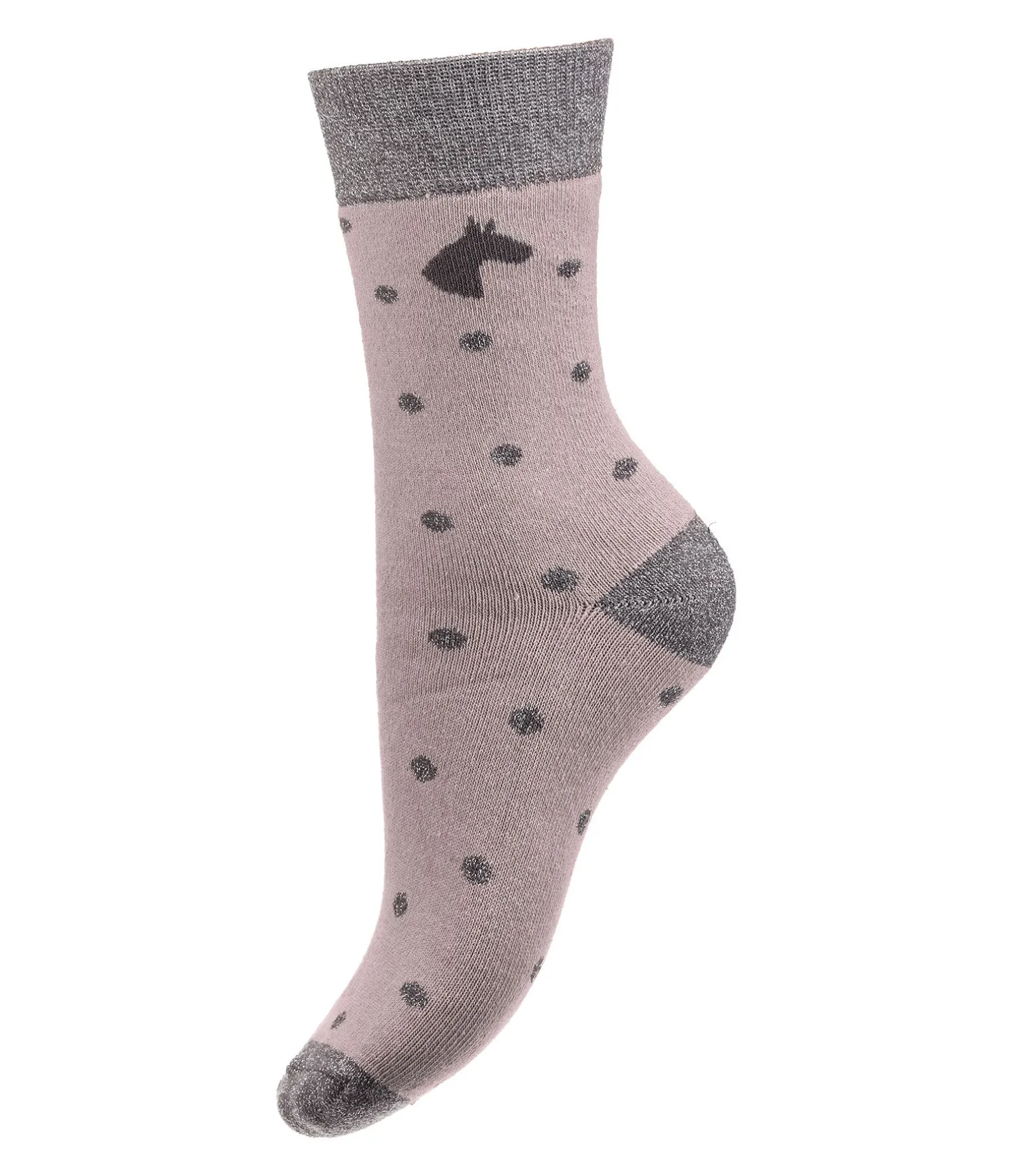 Chaussettes douillettes pour enfant dans un design à pois scintillants tendance et motif cheval. 80 % coton, 17 % polyester, 2 % nylon, 1 % élasthanne.