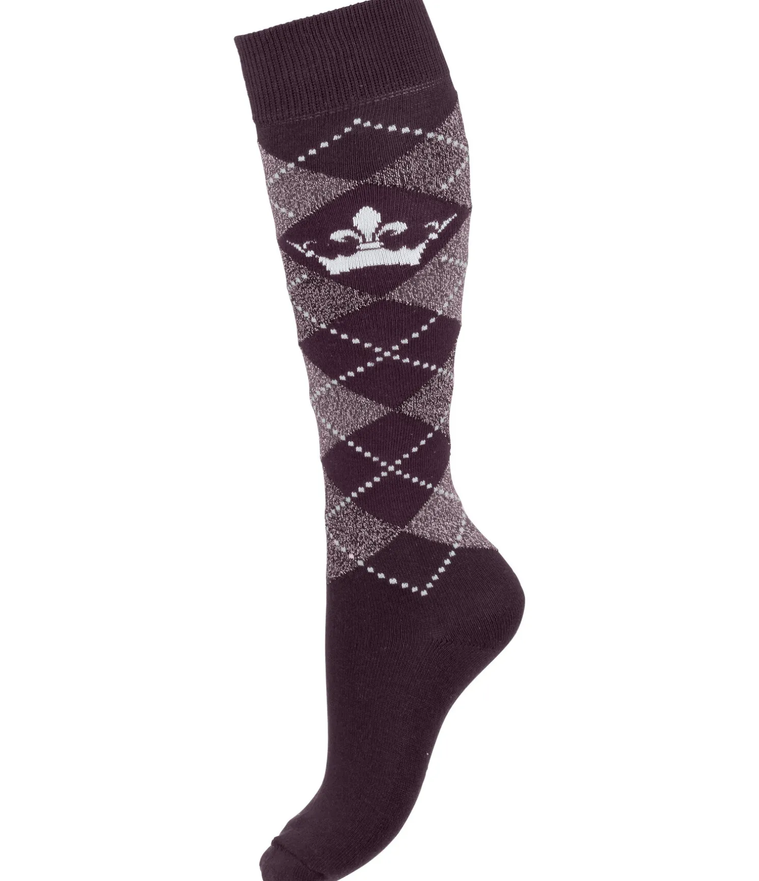 Chaussettes hautes Argyle avec fil scintillant. Haute teneur en coton pour un confort optimal. Bordure élastiquée et douce pour un maintien sûr. 72 % coton, 22 % polyester, 3 % nylon, 3 % élasthanne.