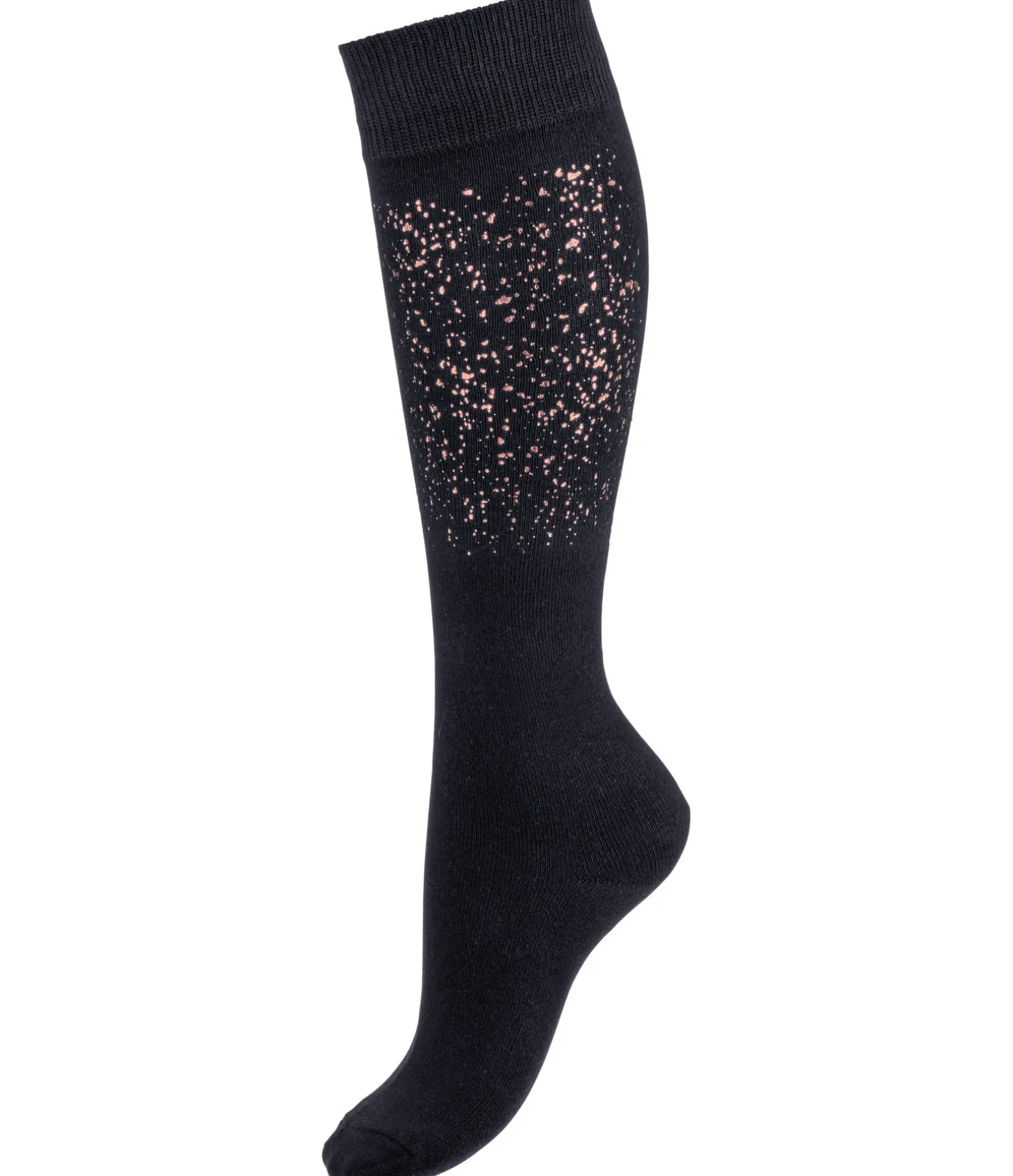 Chaussettes hautes avec un joli imprimé pailleté. Haute teneur en coton pour un confort optimal. Bordure élastiquée et douce. 80 % coton, 17 % polyester, 3 % élasthanne.