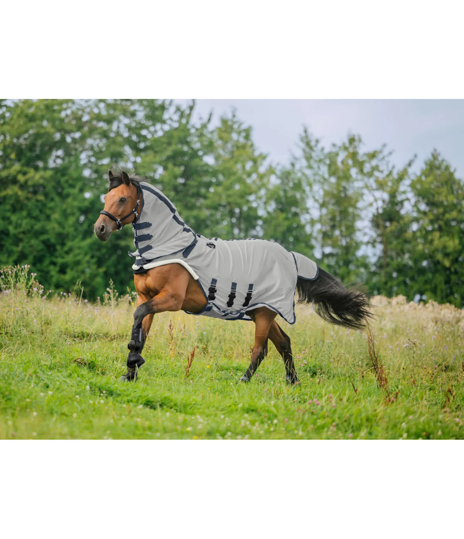 Chemise de marcheur anti-mouches premium en mesh respirant. Rabat ventral réglable avec sursangles élastiques et couvre-cou amovible avec boucle auto-agrippante élastiquée permettant de le fixer à la têtière du licol. Ouverture pour l’encolure et découpe aux antérieurs avec bordure en polaire Teddy douce pour un confort optimal. Fermeture de poitrail avec crochet en T dissimulée et doublée en caoutchouc chloroprène pour éviter les pressions et les irritations dues aux frottements. Pad de garrot en polaire Teddy douillette. Réglable aux épaules grâce à une patte auto-agrippante de chaque côté, permettant d’adapter la chemise à la morphologie du cheval. Doublure lisse satinée dans la zone des épaules, du poitrail, de l’encolure et de la queue. Avec rabat de queue et courroie de queue réglable. 100 % polyester.