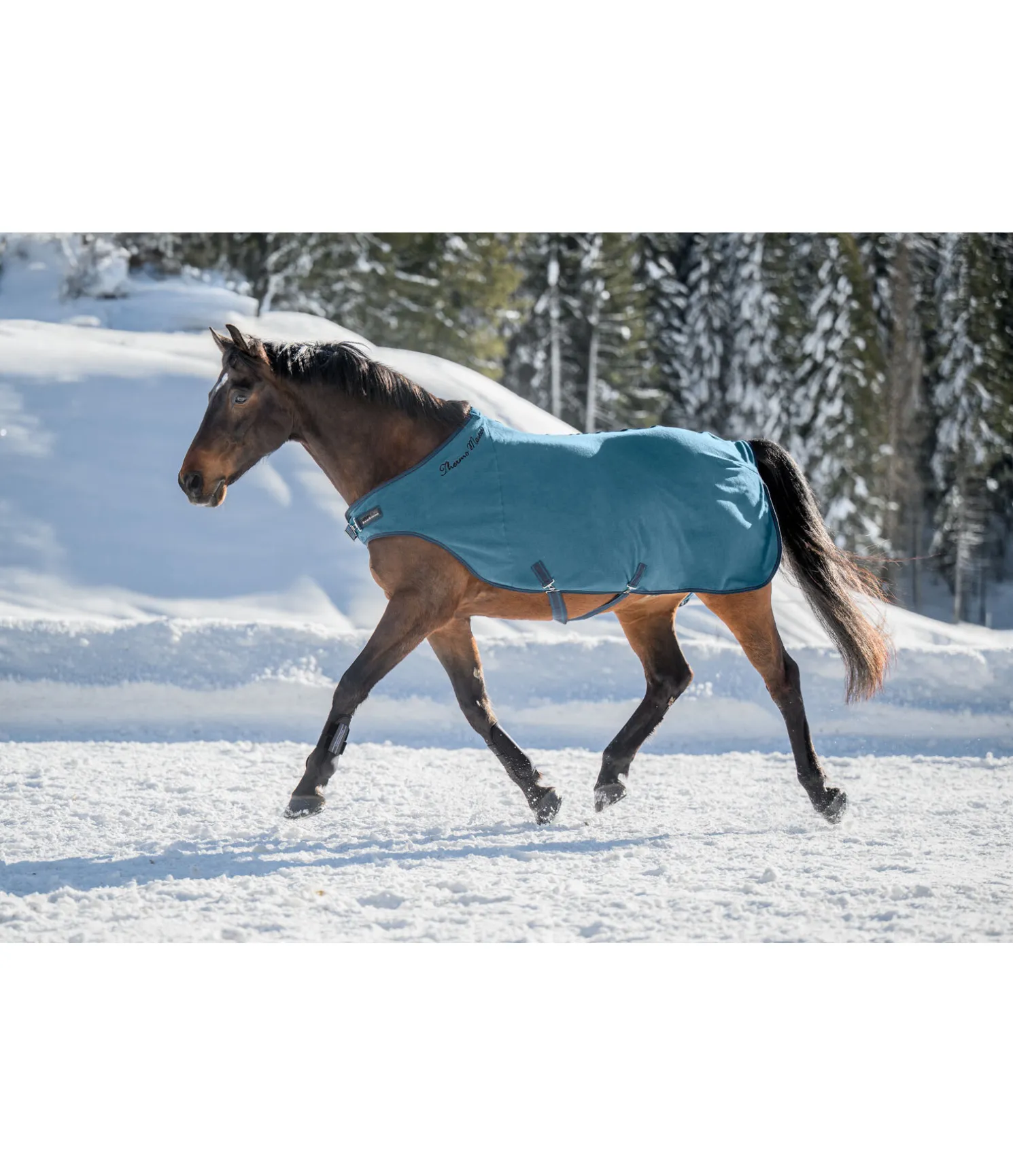 Chemise légère, idéale pour le marcheur, le travail en longe et le travail à pied. Polaire douce, respirante, anti-bouloches et à séchage rapide. Découpe aux épaules pour une liberté de mouvement optimale. Fermeture de poitrail avec crochet en T, sursangles croisées réglables et pad de garrot. Doublure lisse protégeant la robe au niveau des épaules et du poitrail pour éviter les irritations dues aux frottements. Courroie de queue réglable incluse. 100 % polyester.