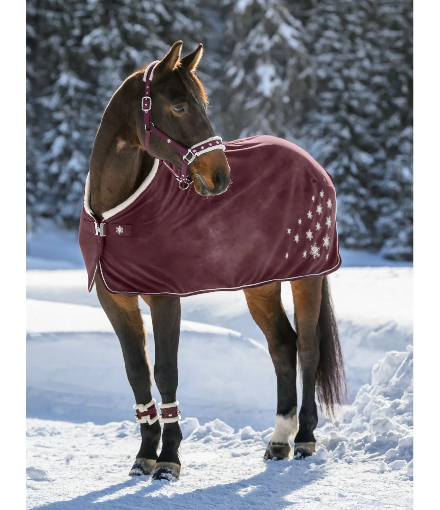 Chemise séchante de Noël. Col doux en polaire Teddy. Flocons de neige brodés à l’arrière. Fermeture de poitrail en T orné d’un flocon de neige. 100 % polyester.